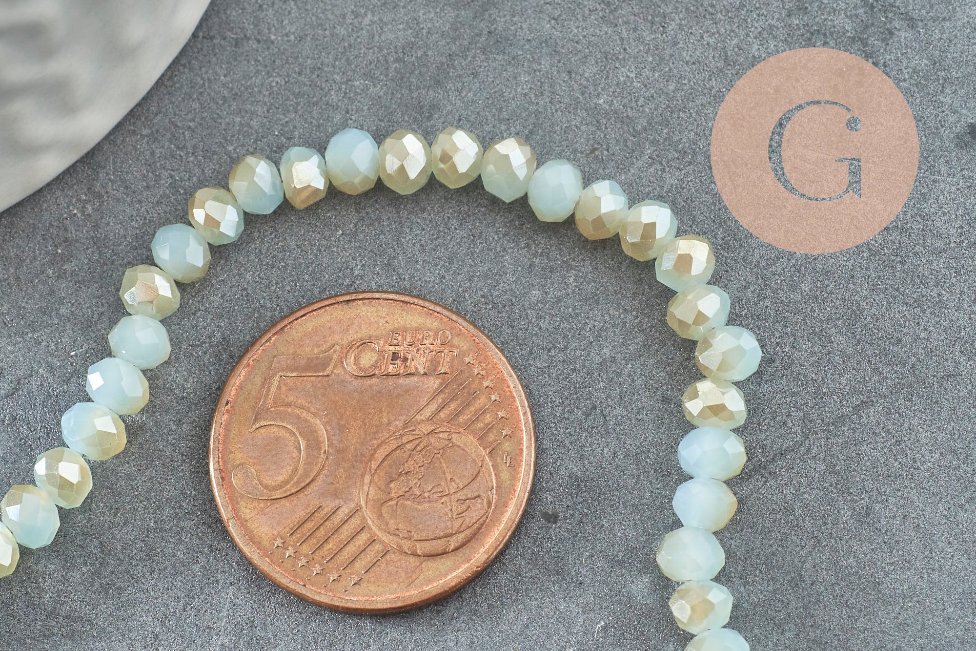 EP - Cuentas redondas de vidrio facetado opaco en azul pálido y dorado de 4 x 3 mm, bisutería DIY, tira de 39 cm, x1 G8264