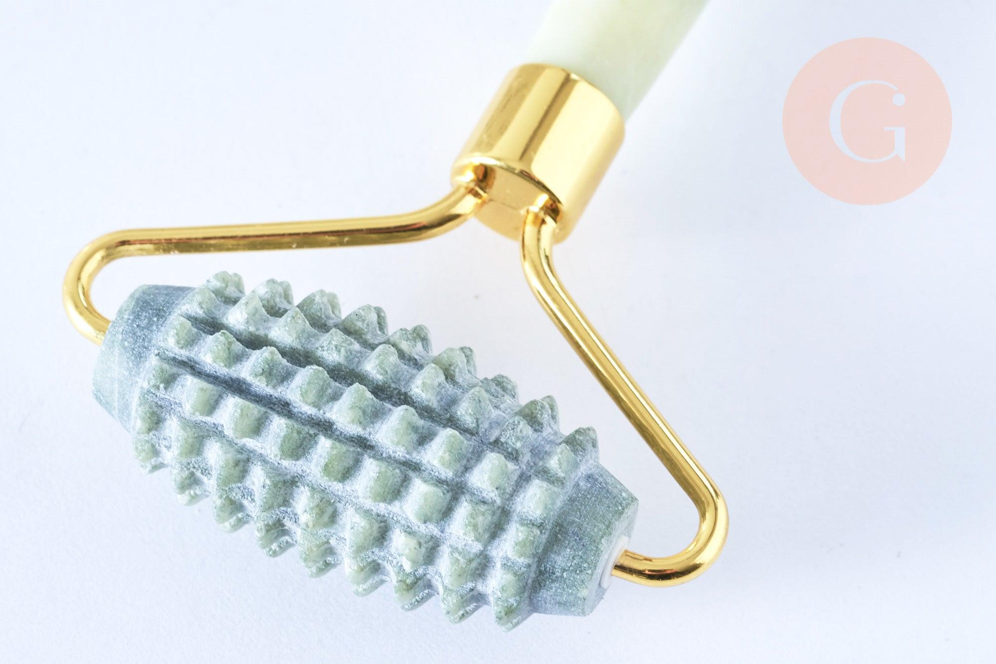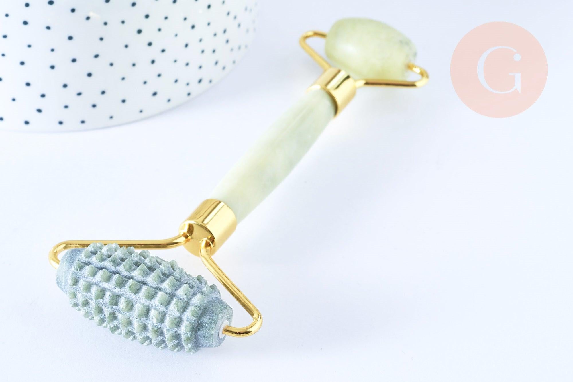 Un rodillo de masaje de jade natural que estimulará los tejidos, promoverá la circulación sanguínea y el drenaje linfático.