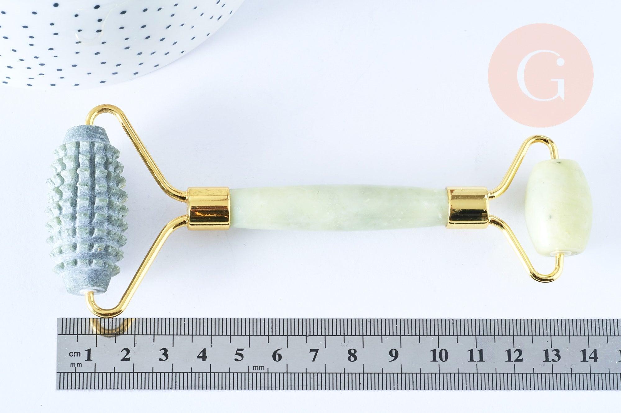 Rodillo de masaje de jade natural soporte dorado 14,3 mm, herramienta de automasaje, x1 G7238