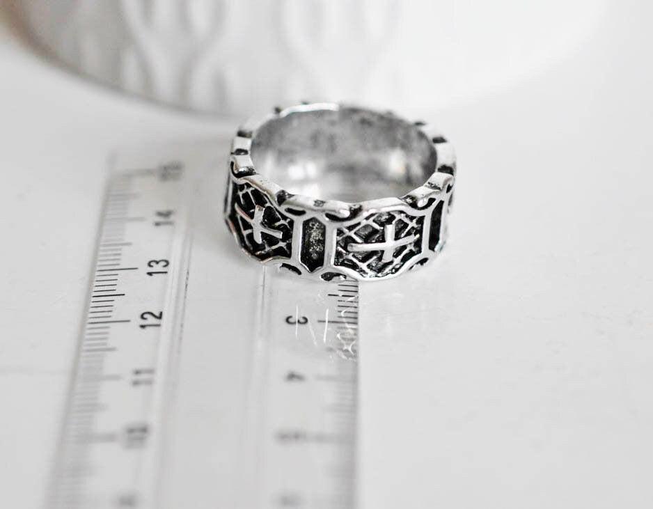 Anillo cruz de plata, creación de joyas, joyería para hombre, joyería minimalista, soporte para anillo, anillo para hombre, anillo de plata para hombre, joyería para hombre, 20mm Un soporte para anillos ajustable muy bonito en metal plateado con motivo de...
