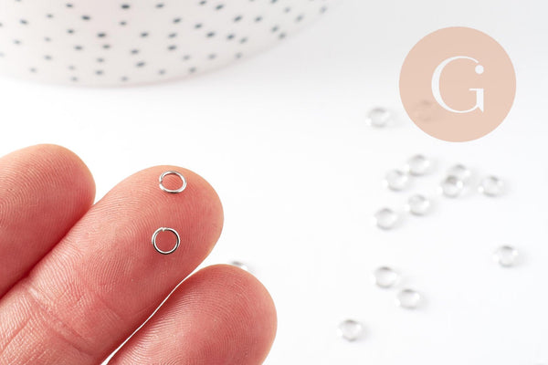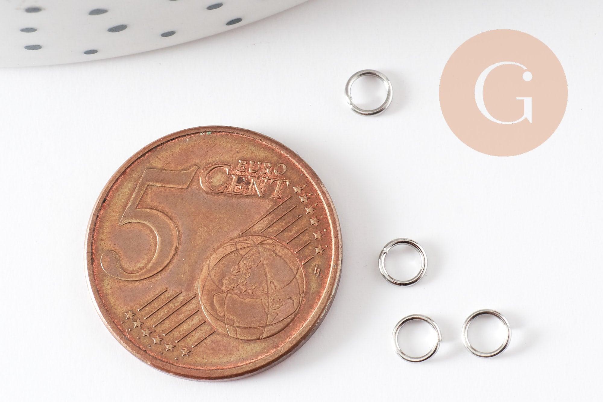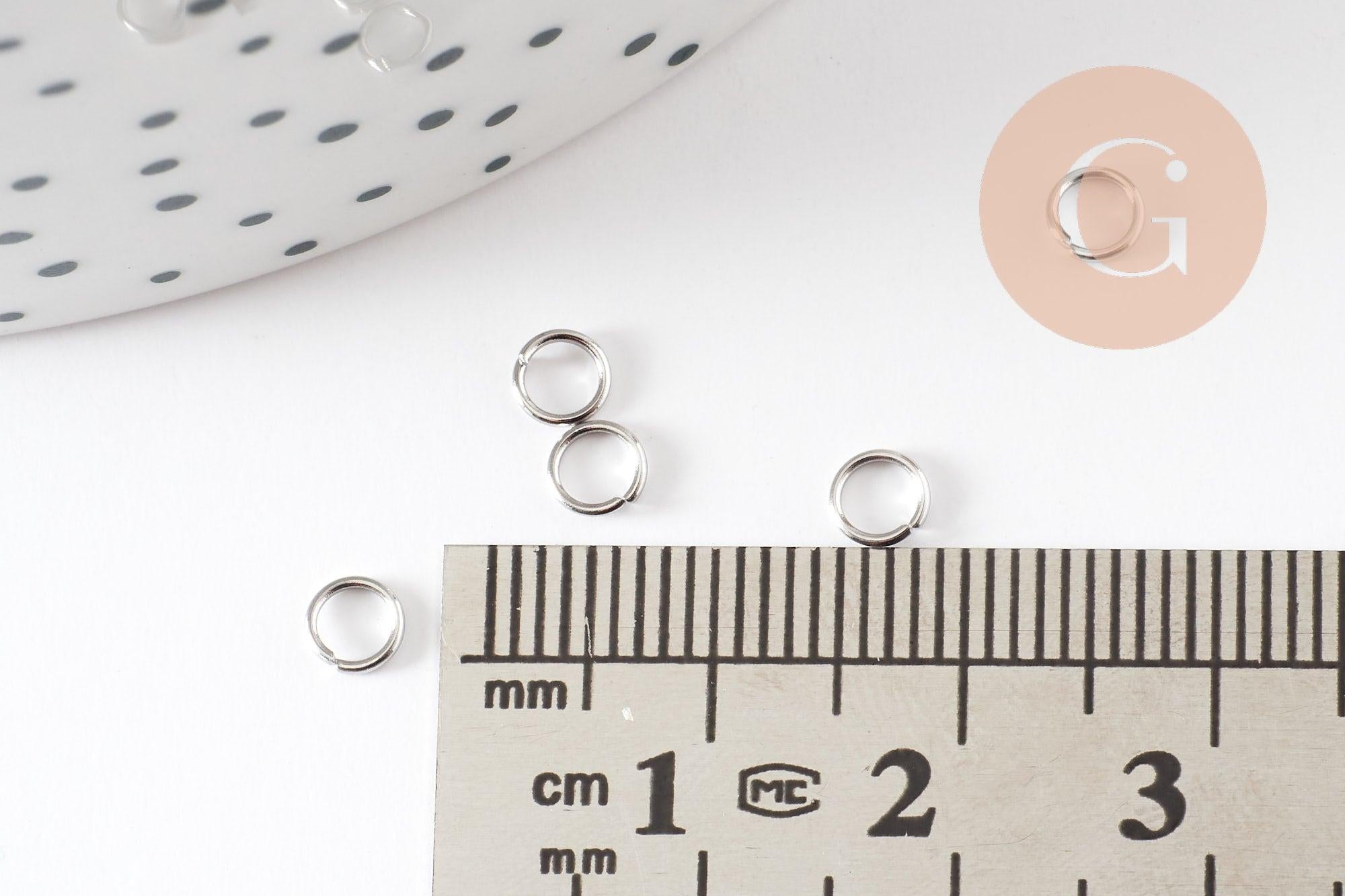 Estos anillos de acero inoxidable platino de 4 mm son elementos de joyería confiables para sus proyectos de bricolaje . Te permiten conectar dos piezas separadas, como dos colgantes, para crear tu joyería.