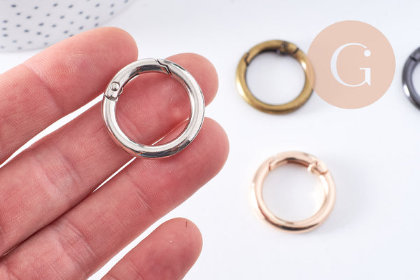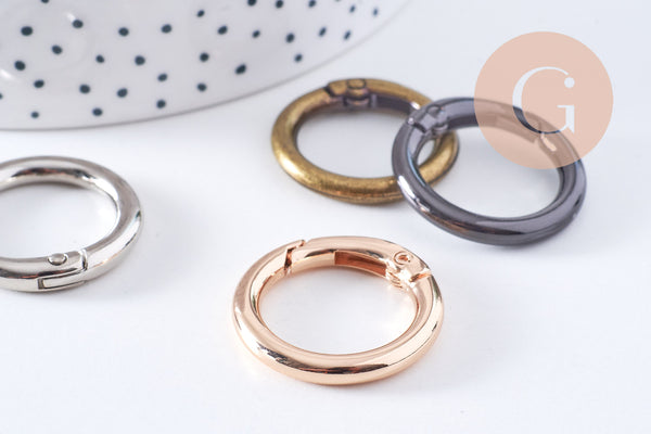 Cierre de mosquetón redondo XXL en zamac dorado, platino, metalgun u oro rosa de 27,5 mm (x1) (G10700)