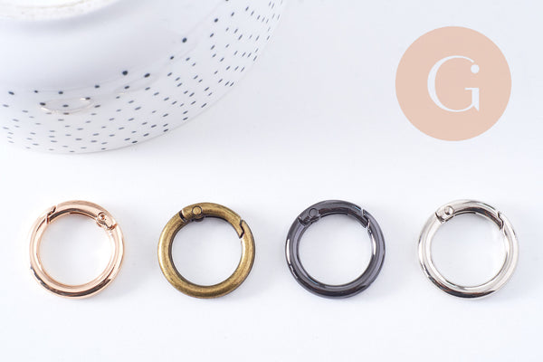 Dale un toque moderno y atrevido a tus creaciones con este cierre redondo XXL de zamac . Disponible en 4 colores de moda: oro, platino, metal gun u oro rosa, este cierre aporta un acabado profesional a tus collares, pulseras, llaveros o colgantes para bolso.