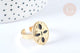 Anillo ajustable grande de acero inoxidable 304 con chevron dorado y esmalte negro. Talla 54, x1 (G7040)