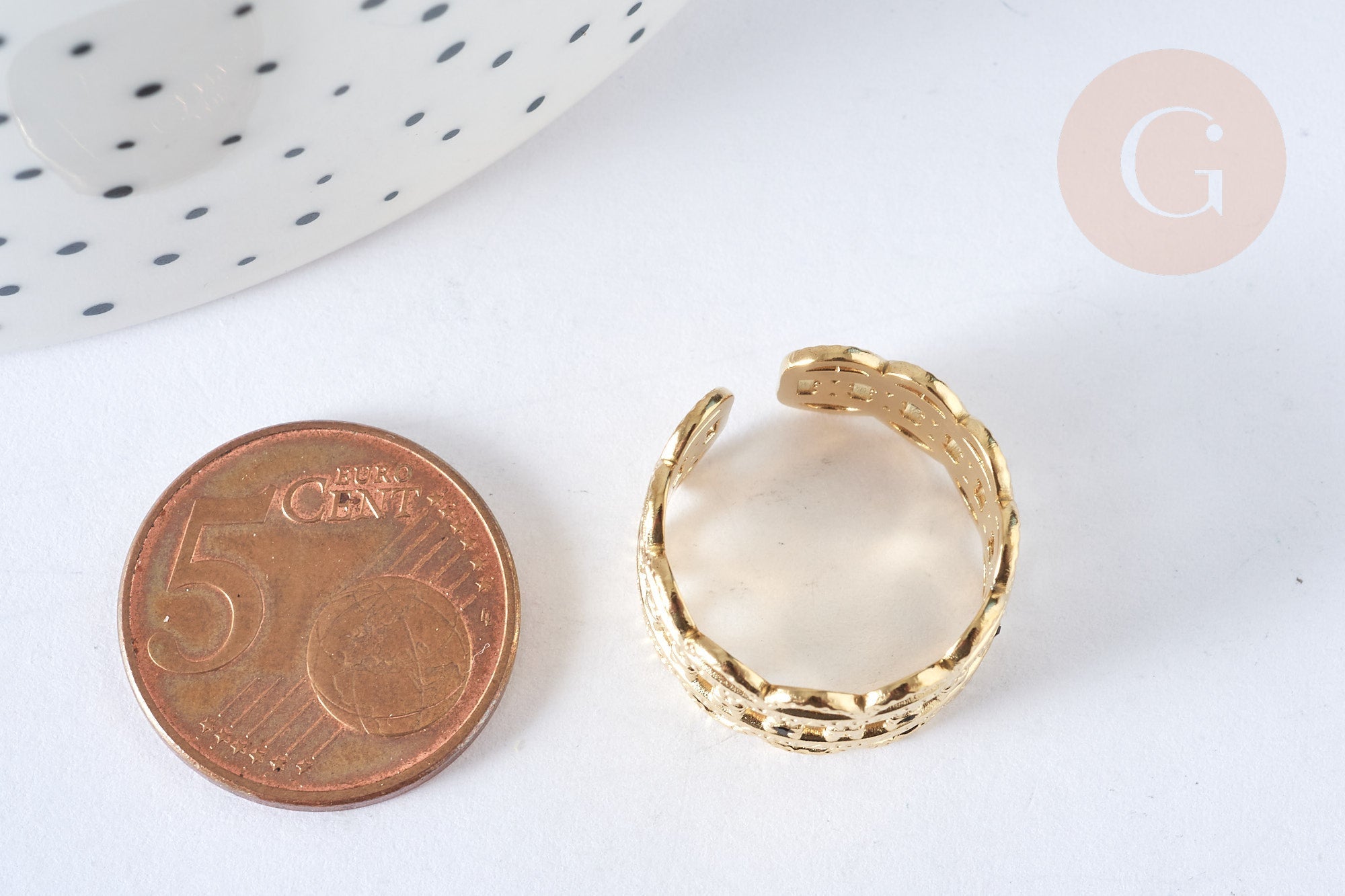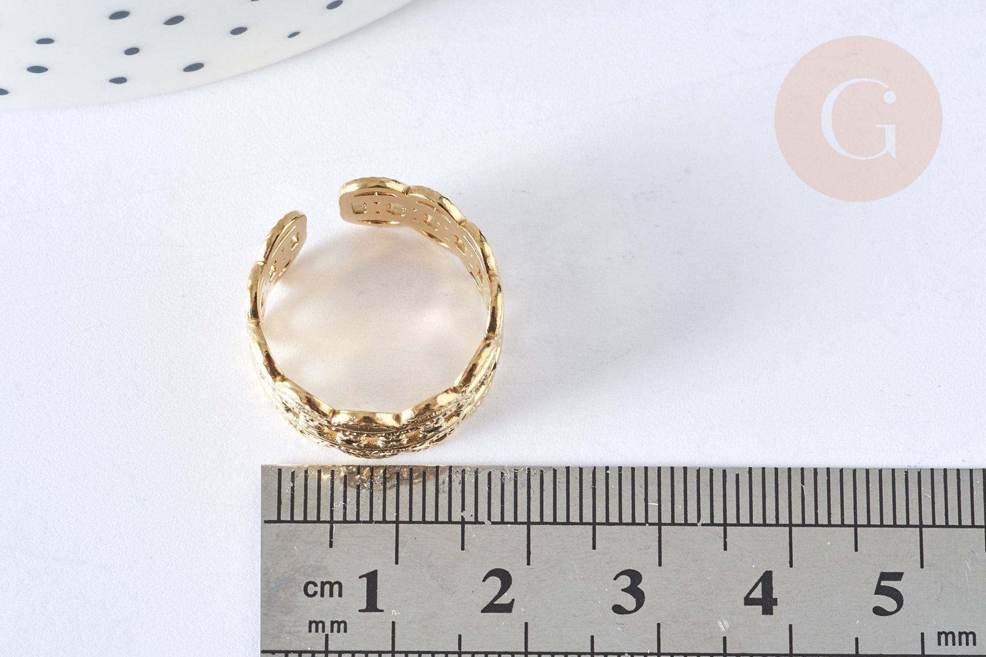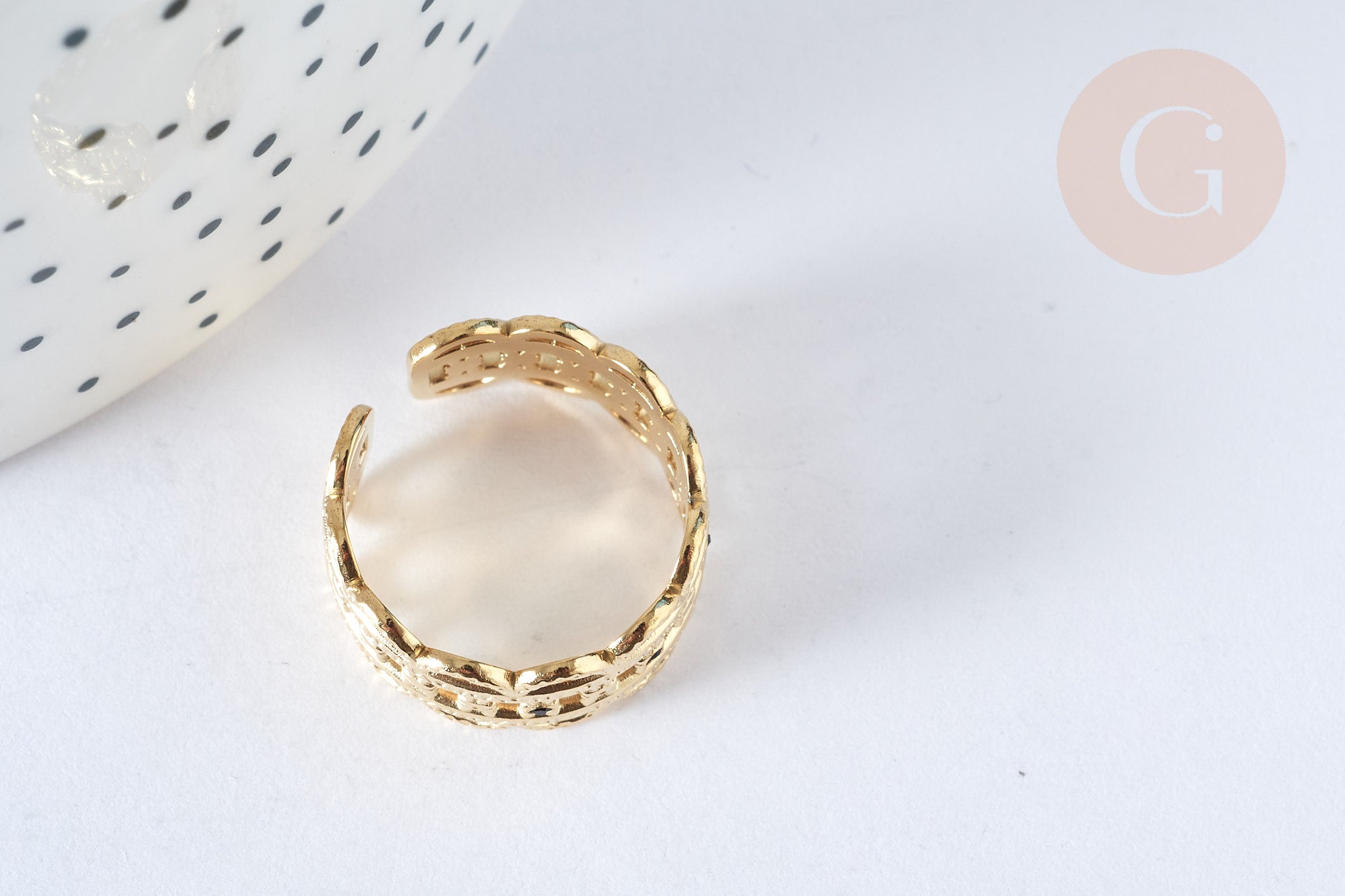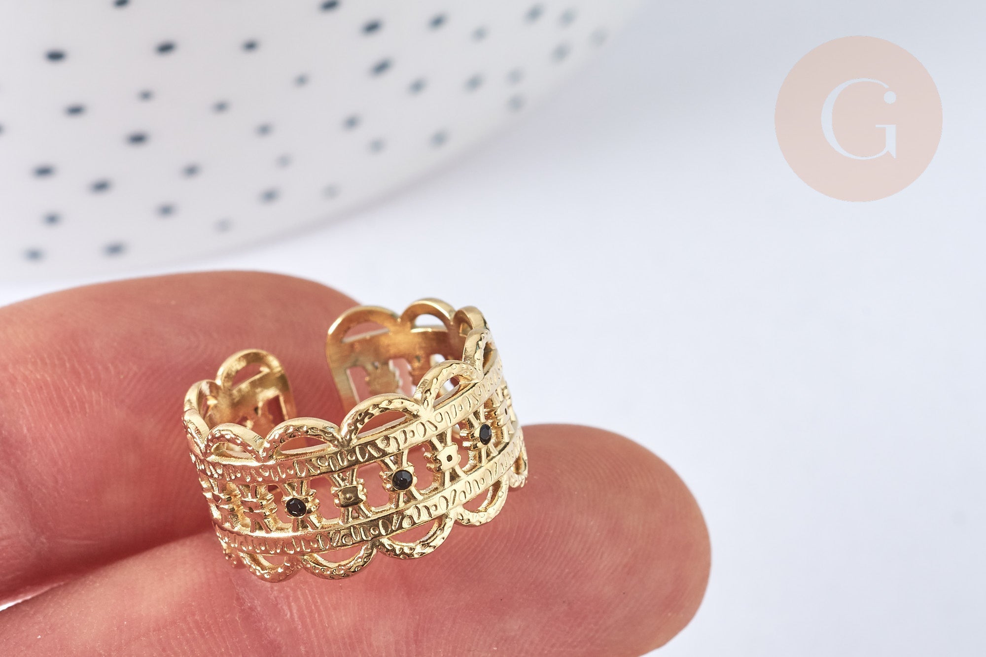 Bague réglable large chevron acier inoxydable doré 304 émail noir Taille 54, x1 (G7040)