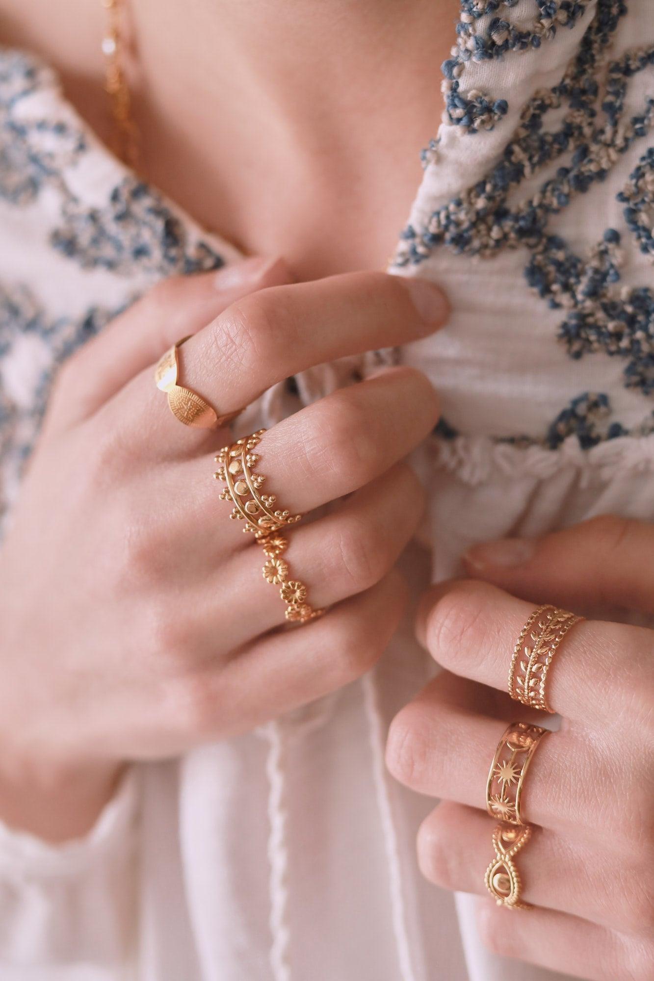 Precioso anillo "ojo protector" de acero bañado en oro, ajustable y decorado con ojos protectores. Un amuleto atemporal y de la suerte que te acompañará todos los días.