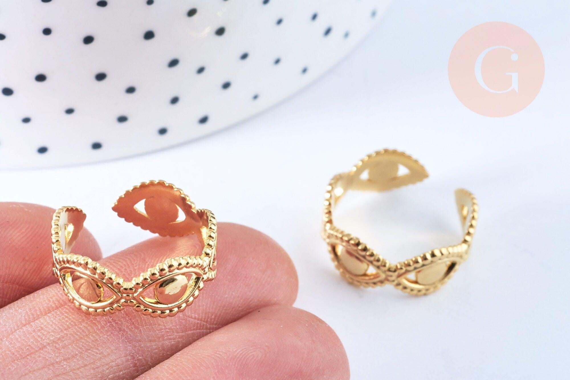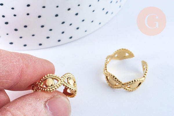 Bague réglable oeil protecteur acier doré Taille 54, x1 (G6411)