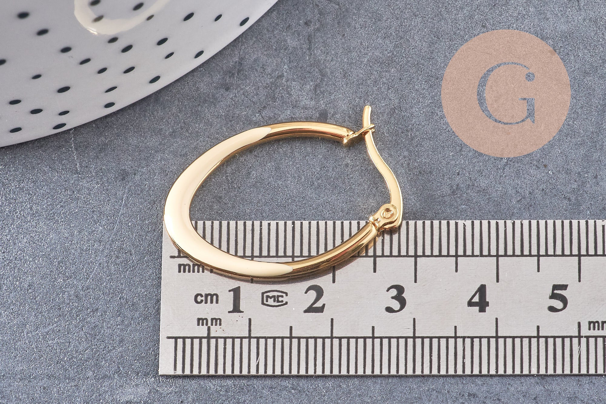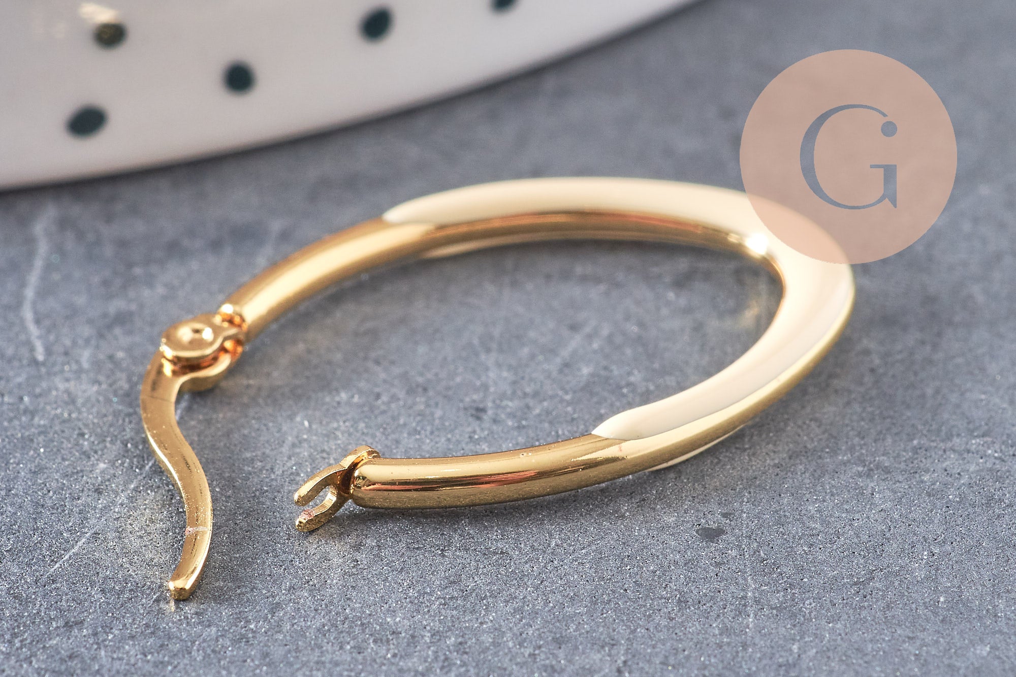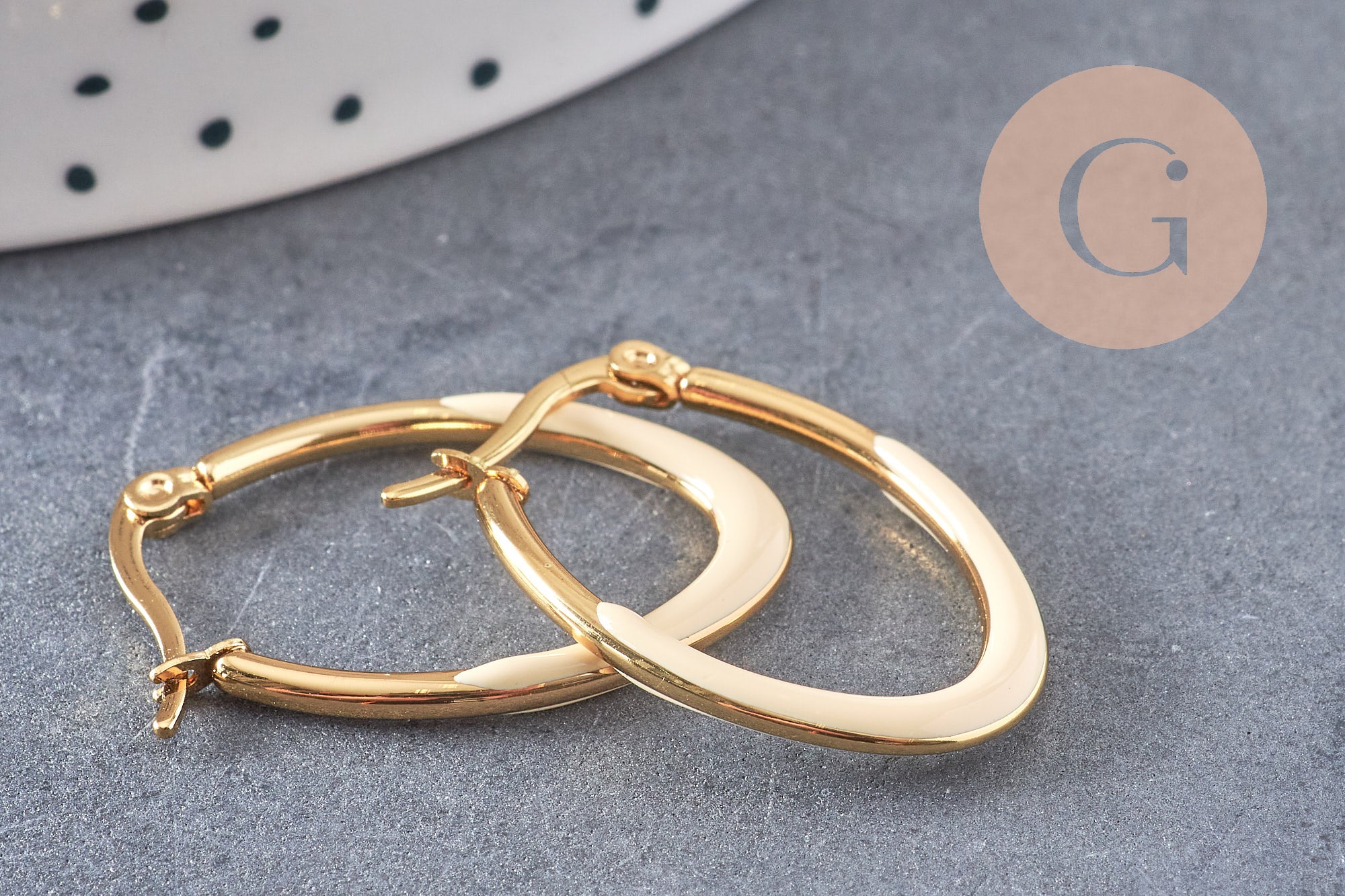 Pendientes criollos ovalados de acero bañado en oro con esmalte blanco, acero inoxidable bañado en oro, par 30x20mm (G4200)