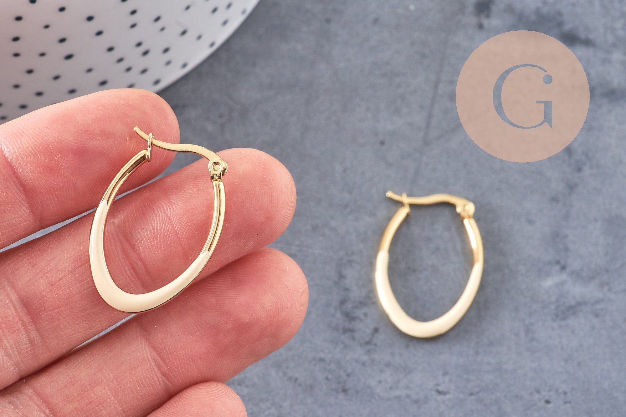 Pendientes criollo ovalados de acero bañado en oro con esmalte blanco, pendientes de acero inoxidable bañado en oro, joyas bañadas en oro, creación de joyas, oreja perforada, par, 30x20 mm