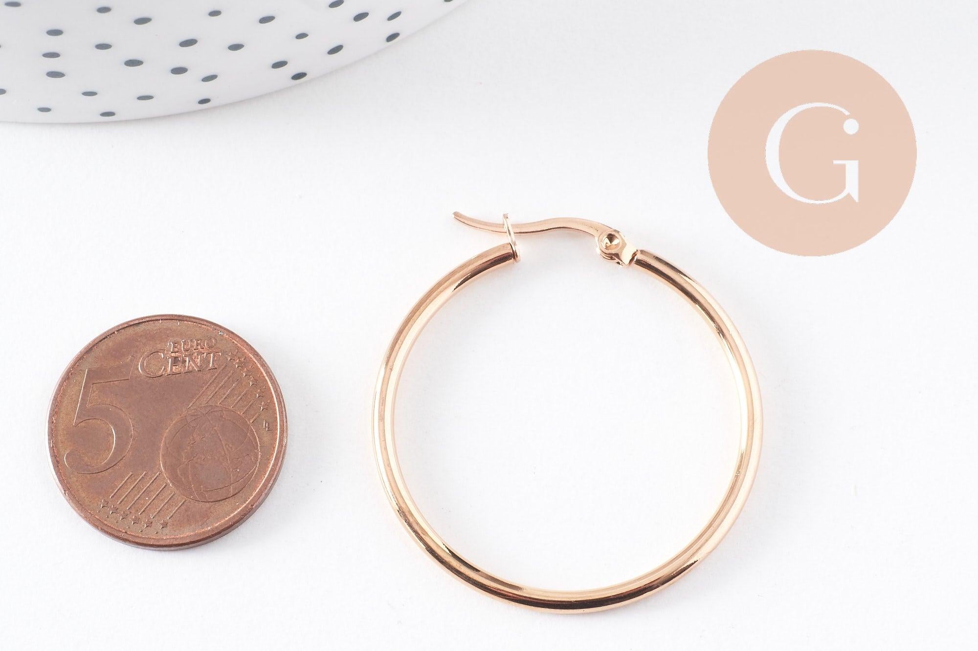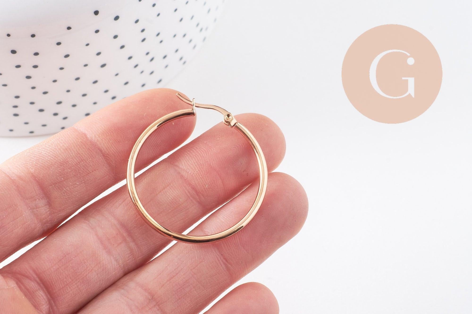 Añade un toque elegante y moderno a tus creaciones con estos pendientes de aro de acero inoxidable 304 en oro rosa , con un diámetro de 36 mm .
