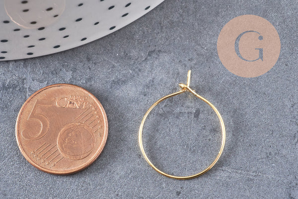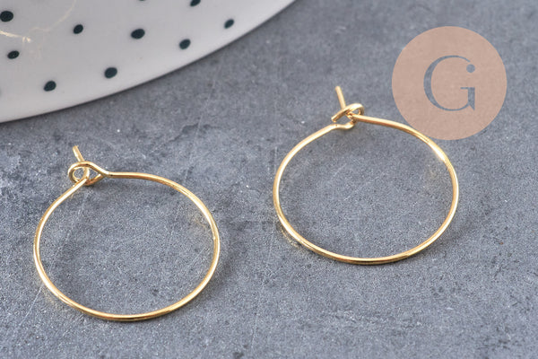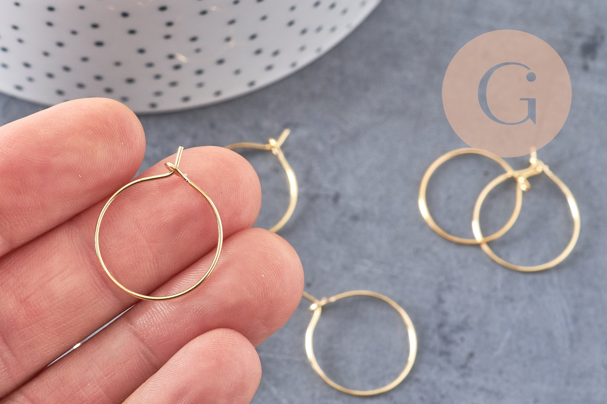 Descubra nuestro juego de 20 aros de latón chapado en oro sin cadmio de 20 mm , suministros esenciales para sus creaciones de aretes DIY.