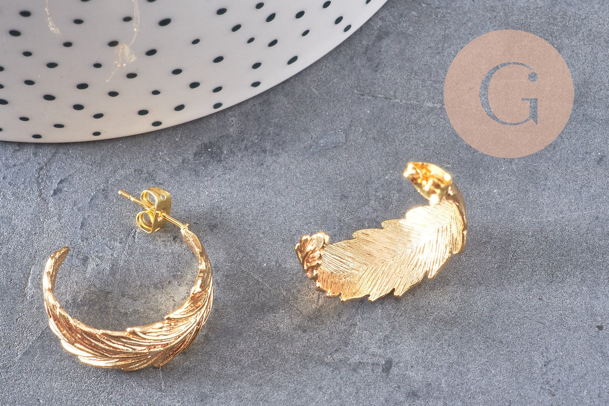 Pendientes de aro de latón bañados en oro de 18k con un motivo de hoja atemporal