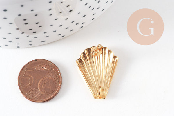 Boucles d'oreilles coquillage acier inoxydable 304 doré 26mm, la paire, (G10756)