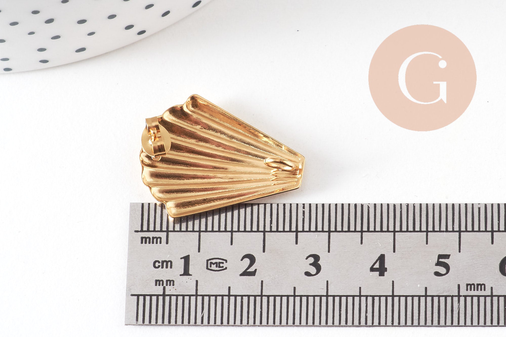 Pendientes de concha de acero inoxidable 304 bañados en oro, 26 mm, par (G10756)