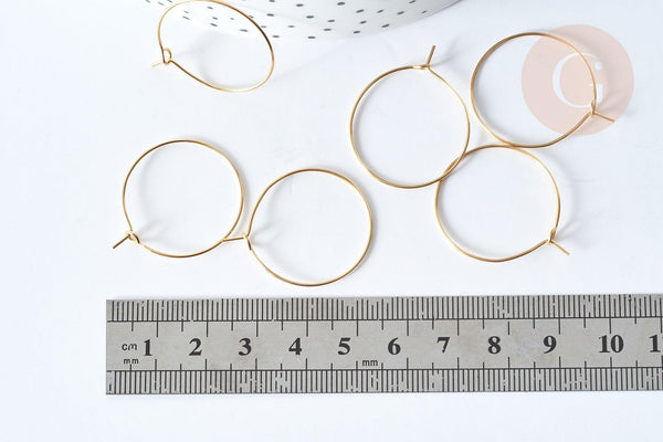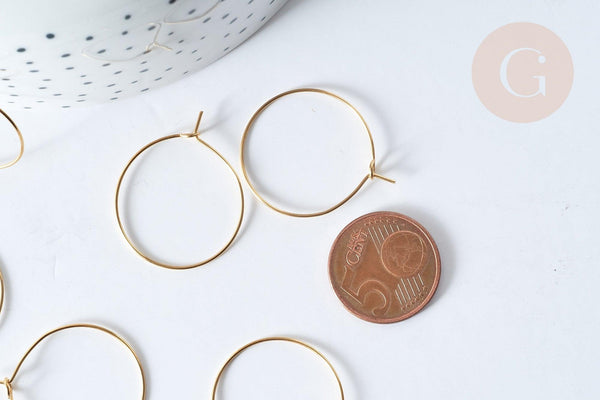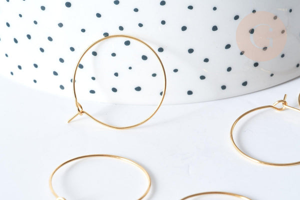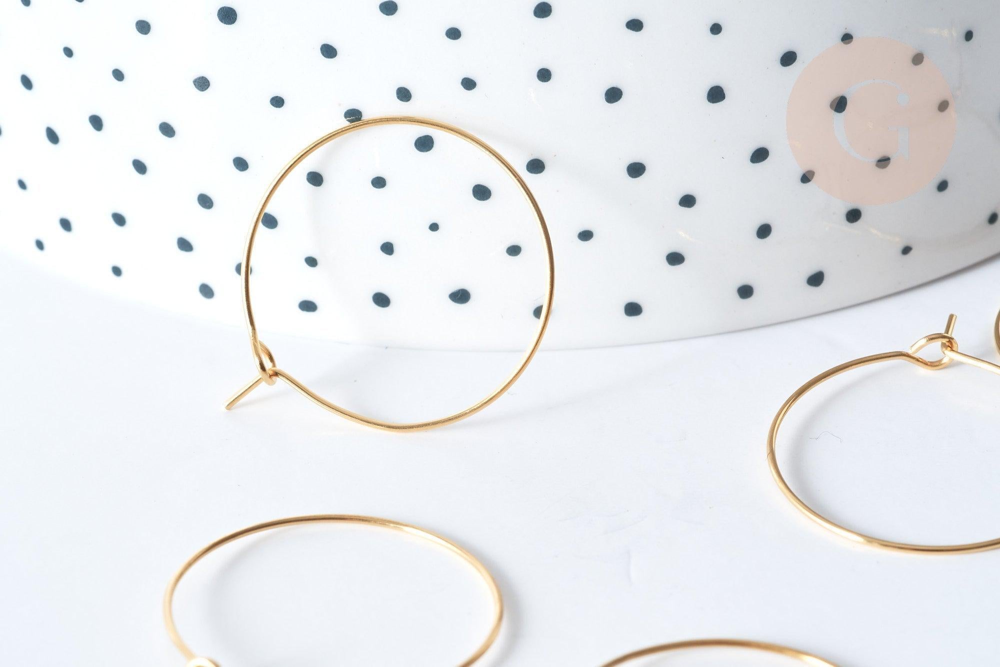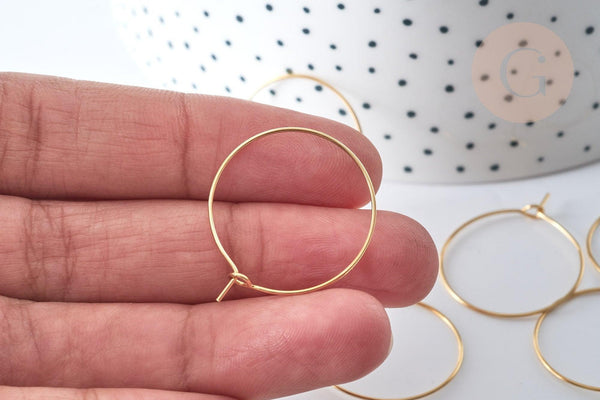 Lote 20-50 anillos criollos en acero inoxidable chapado en oro 304 de 25 mm es el acompañamiento ideal para tus proyectos de joyería únicos. Calidad impecable y ausencia total de níquel, cadmio y plomo.