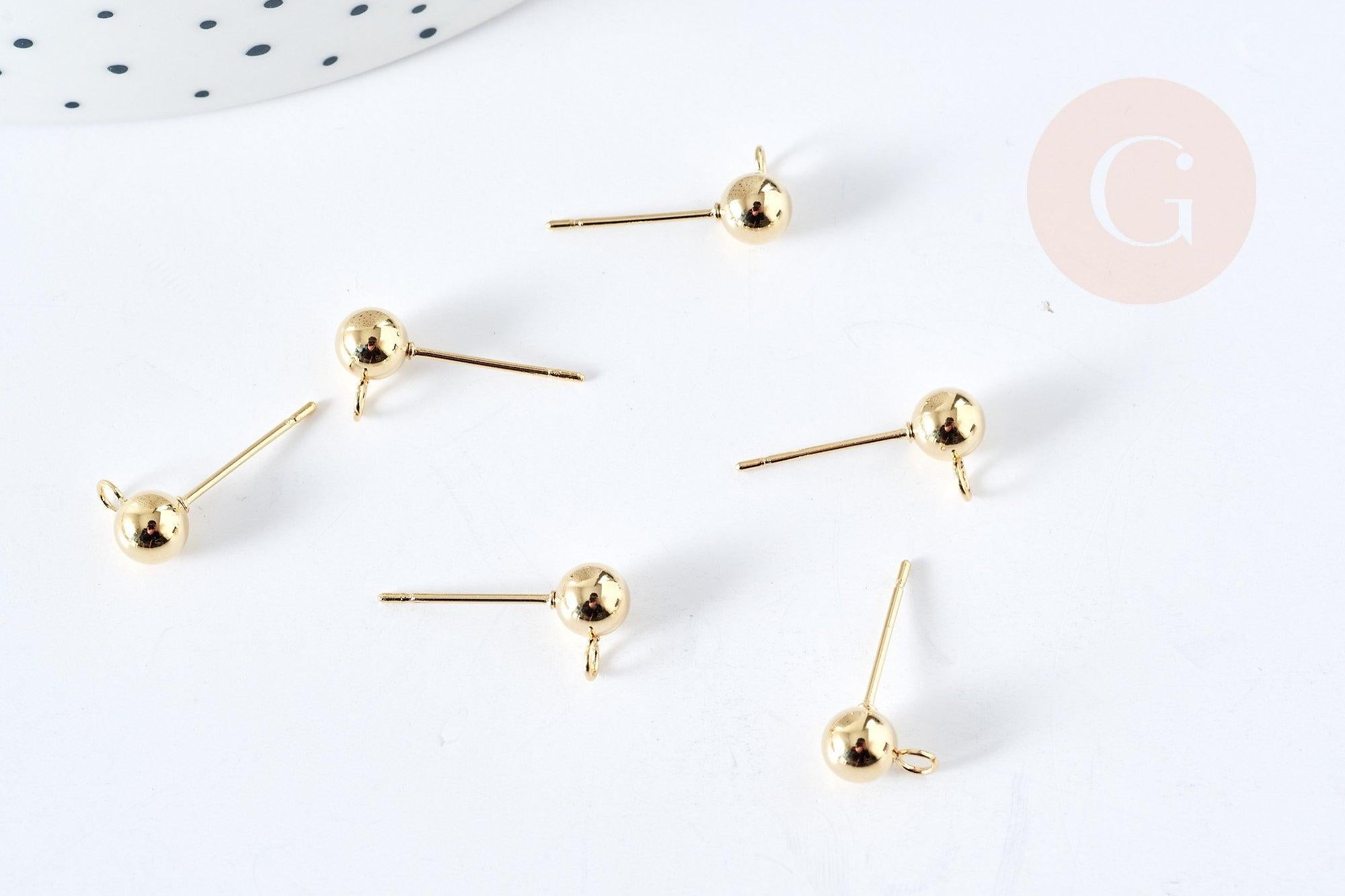 Clous puces oreille boule acier 304 inoxydable doré 24K 17mm, x10 (G8433)