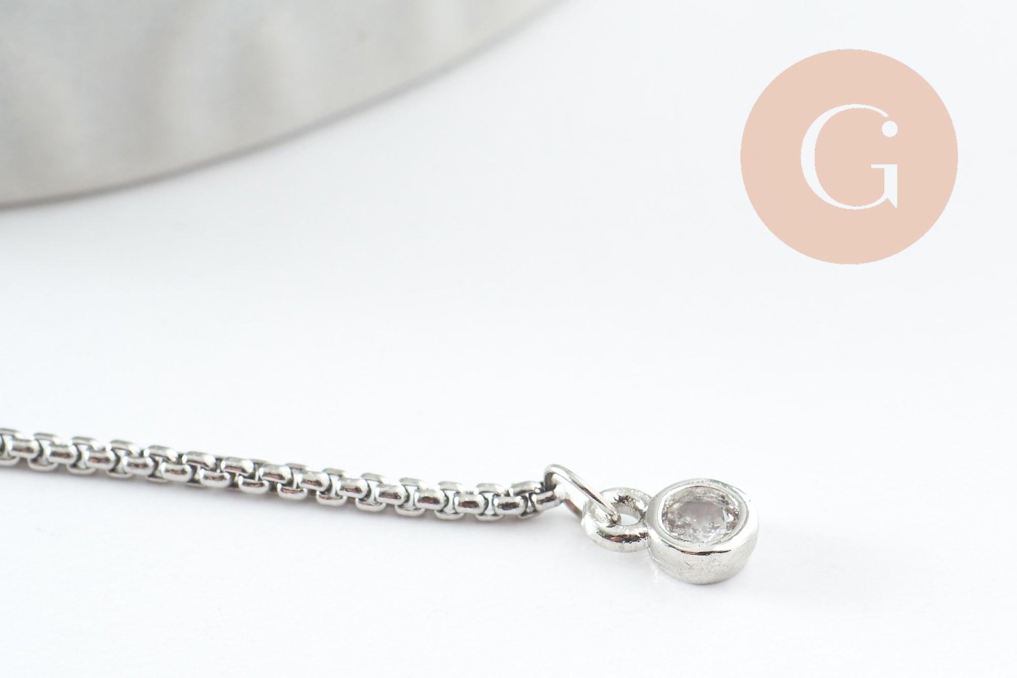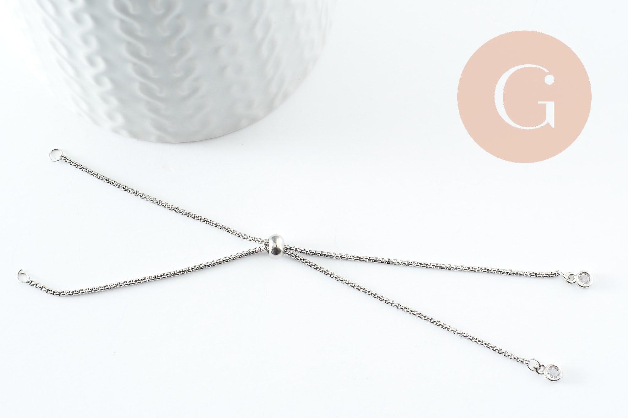 Base de pulsera ajustable, cadena rollo de acero inoxidable con acabado de circonita platino, 1,2 mm/26,6 cm, x1 (G9493)