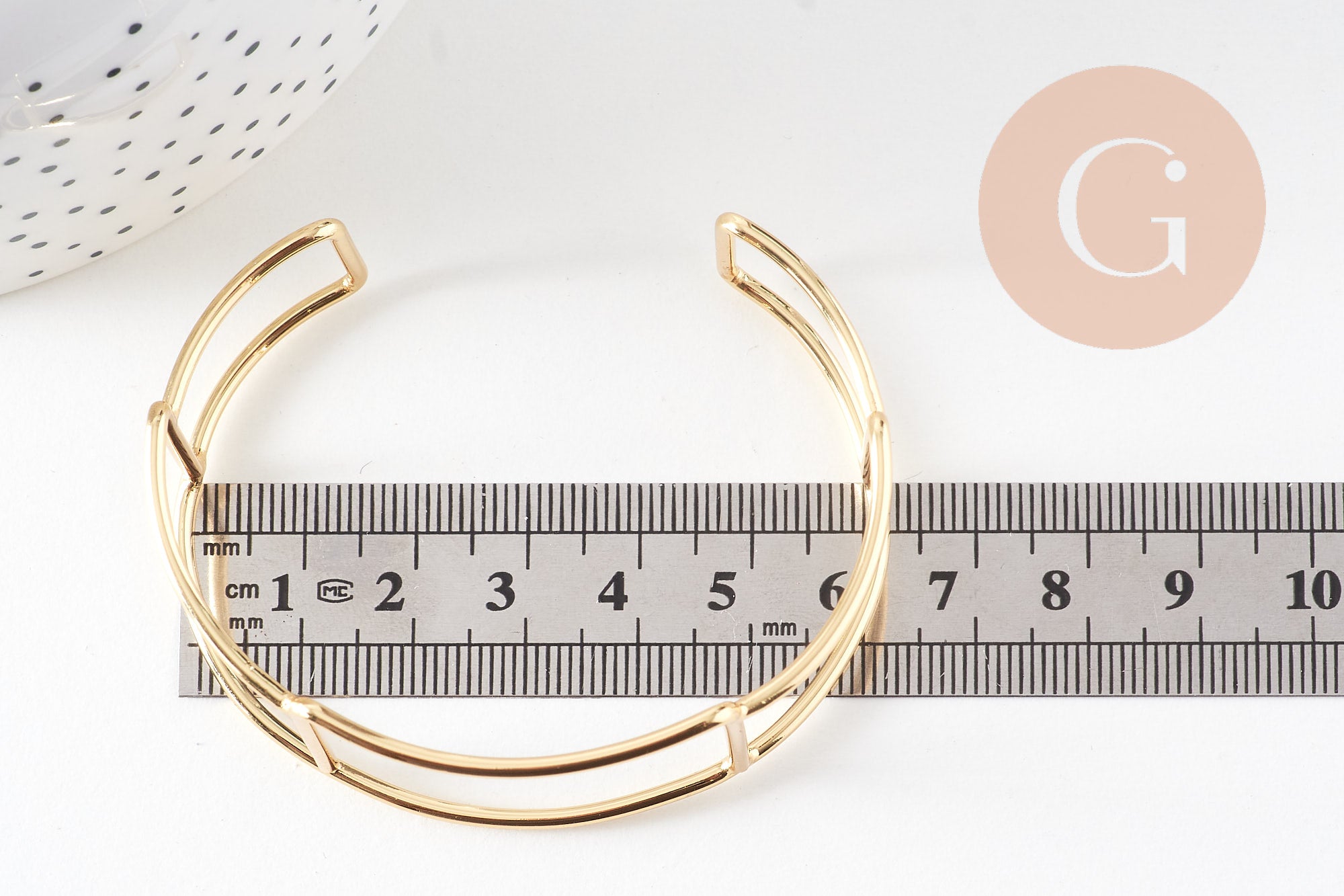 Añade un toque de elegancia a tus creaciones con esta pulsera rígida minimalista y a la vez sofisticada de latón chapado en oro de 18 quilates . Esta base de joyería es perfecta para crear pulseras personalizadas a tu gusto: añade un cabujón, tela, resina o grábala para obtener una pieza verdaderamente única.