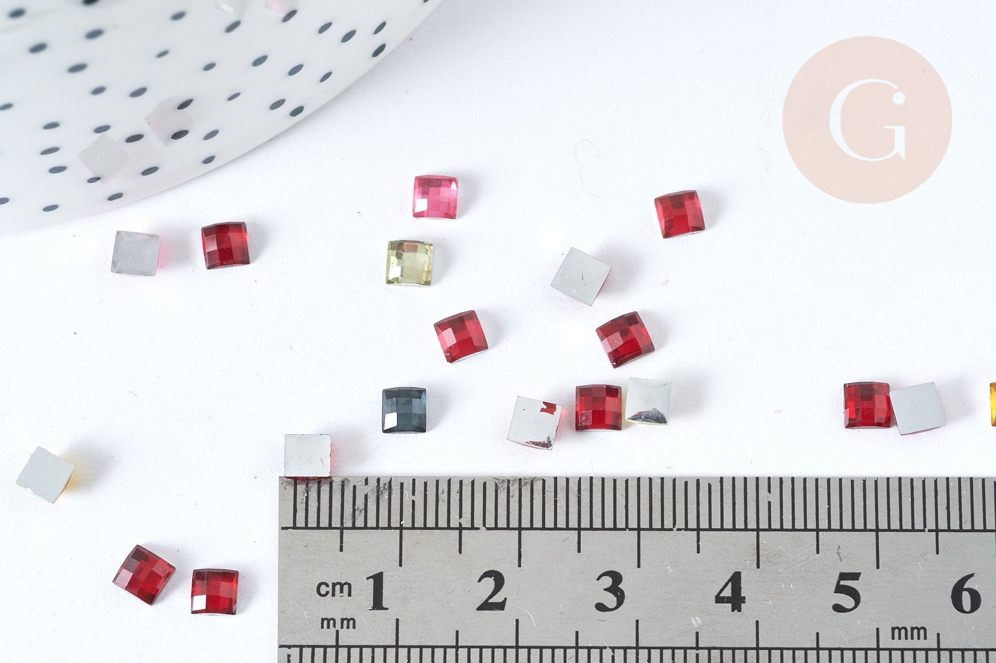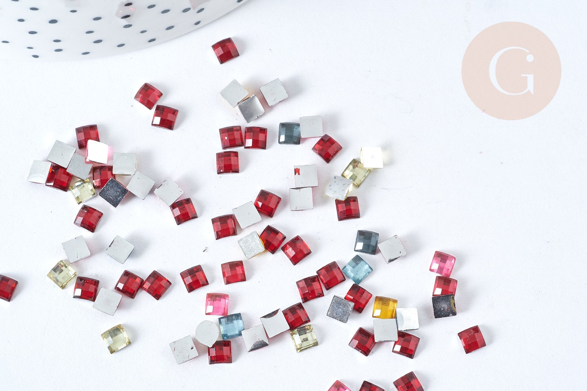Cabujón cuadrado de plástico multicolor con diamantes de imitación de 4x4 mm, 5 gramos (G8338)