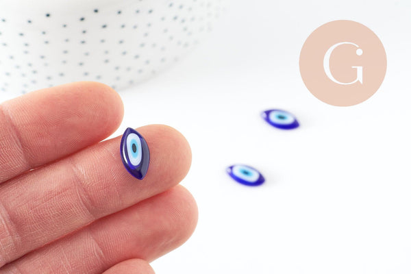 Déjese seducir por estos cabujones de cristal con forma de marquesa, sobre el tema del mal de ojo y la suerte.