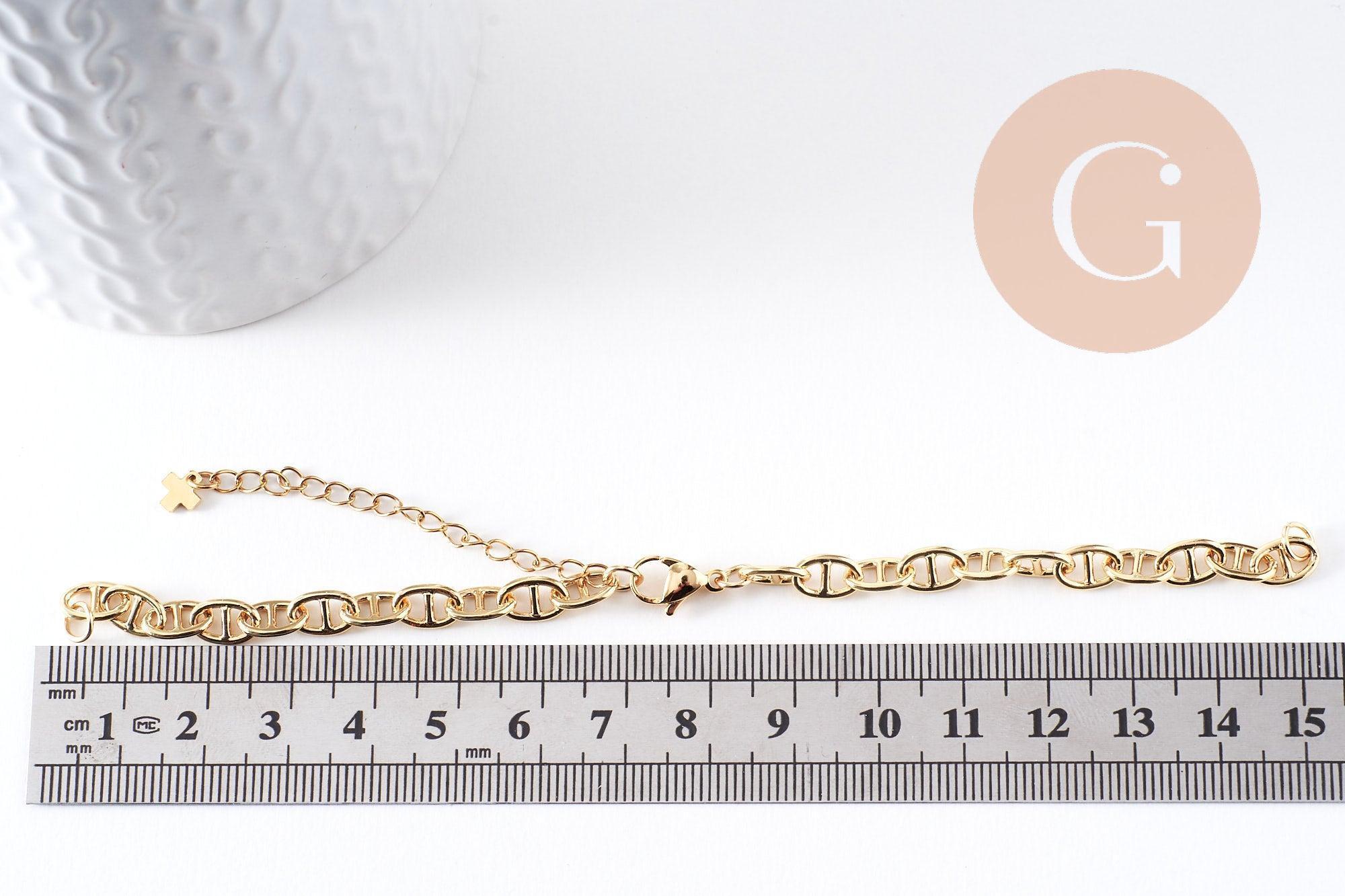Añade un toque elegante y atemporal a tus creaciones con esta base de pulsera de latón bañada en oro de 18 quilates , adornada con una refinada cadena de malla marina . Su diseño náutico y acabado dorado lo convierten en un complemento ideal para crear pulseras personalizadas, añadiendo charms, colgantes o abalorios.