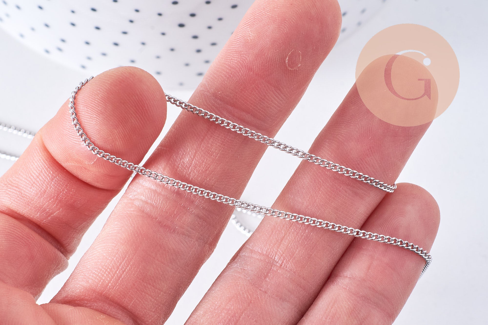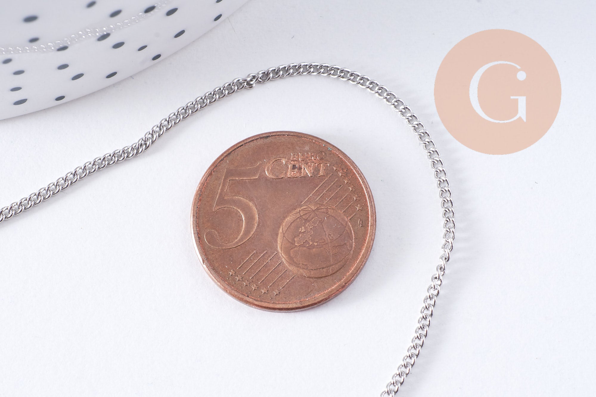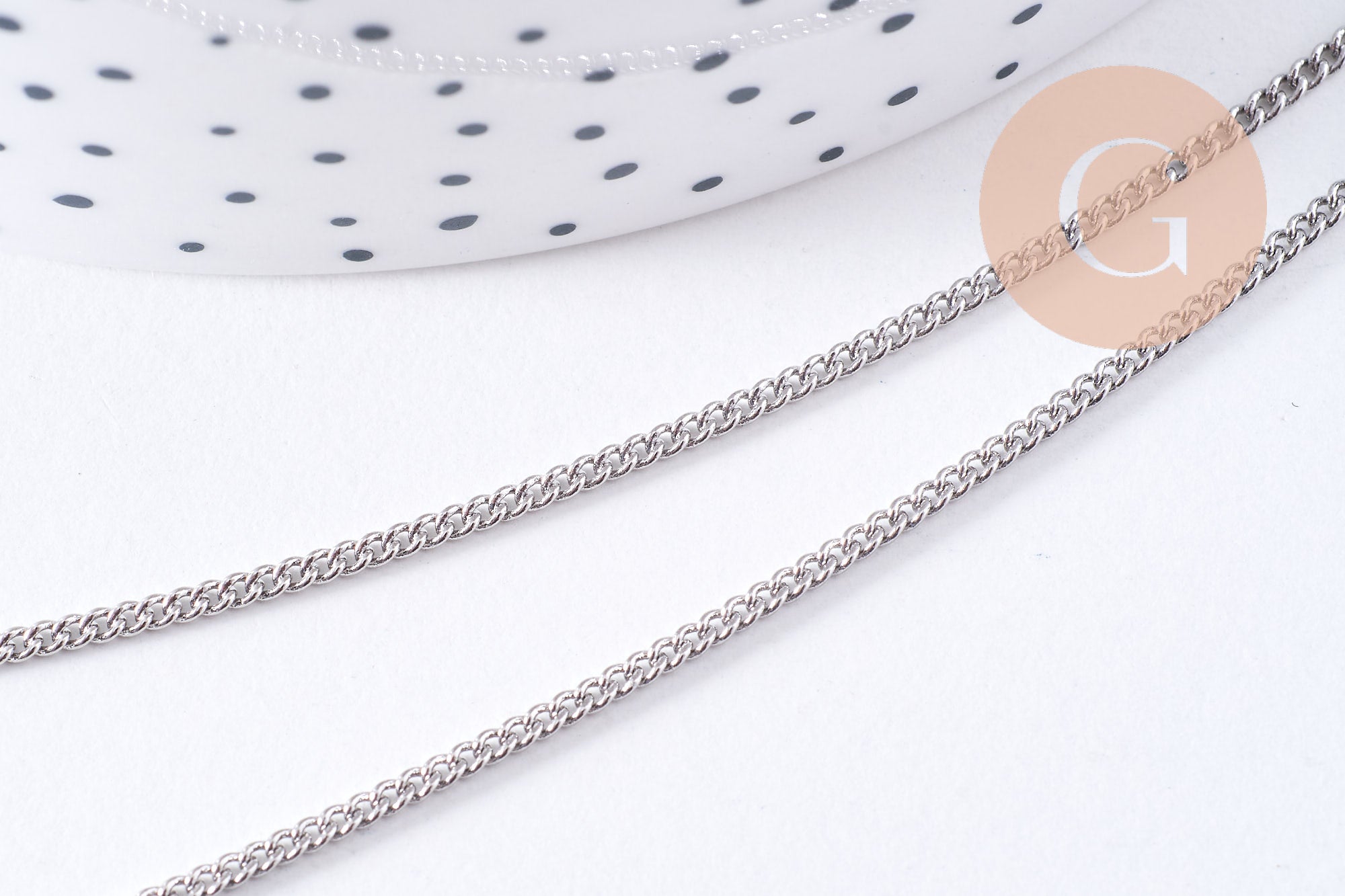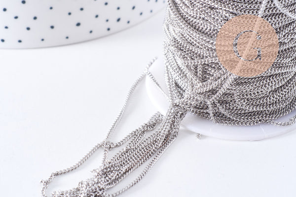Crea joyas modernas con esta fina cadena de eslabones planos de latón platino . Es ideal para crear collares, pulseras, pendientes y mucho más.