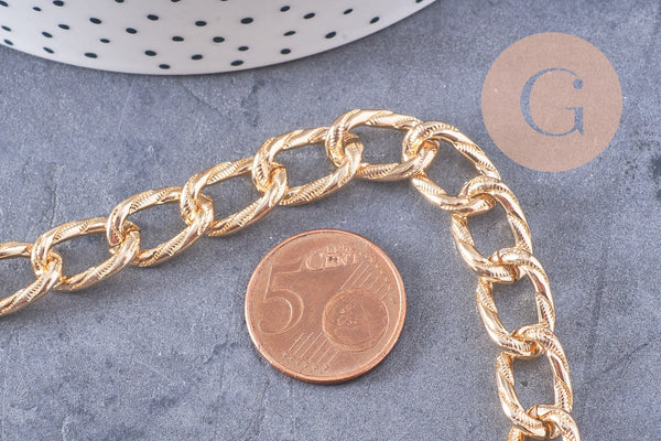 Cadena de eslabones ovalados texturizados en aluminio dorado de 15 mm, x1 metro (G2828)