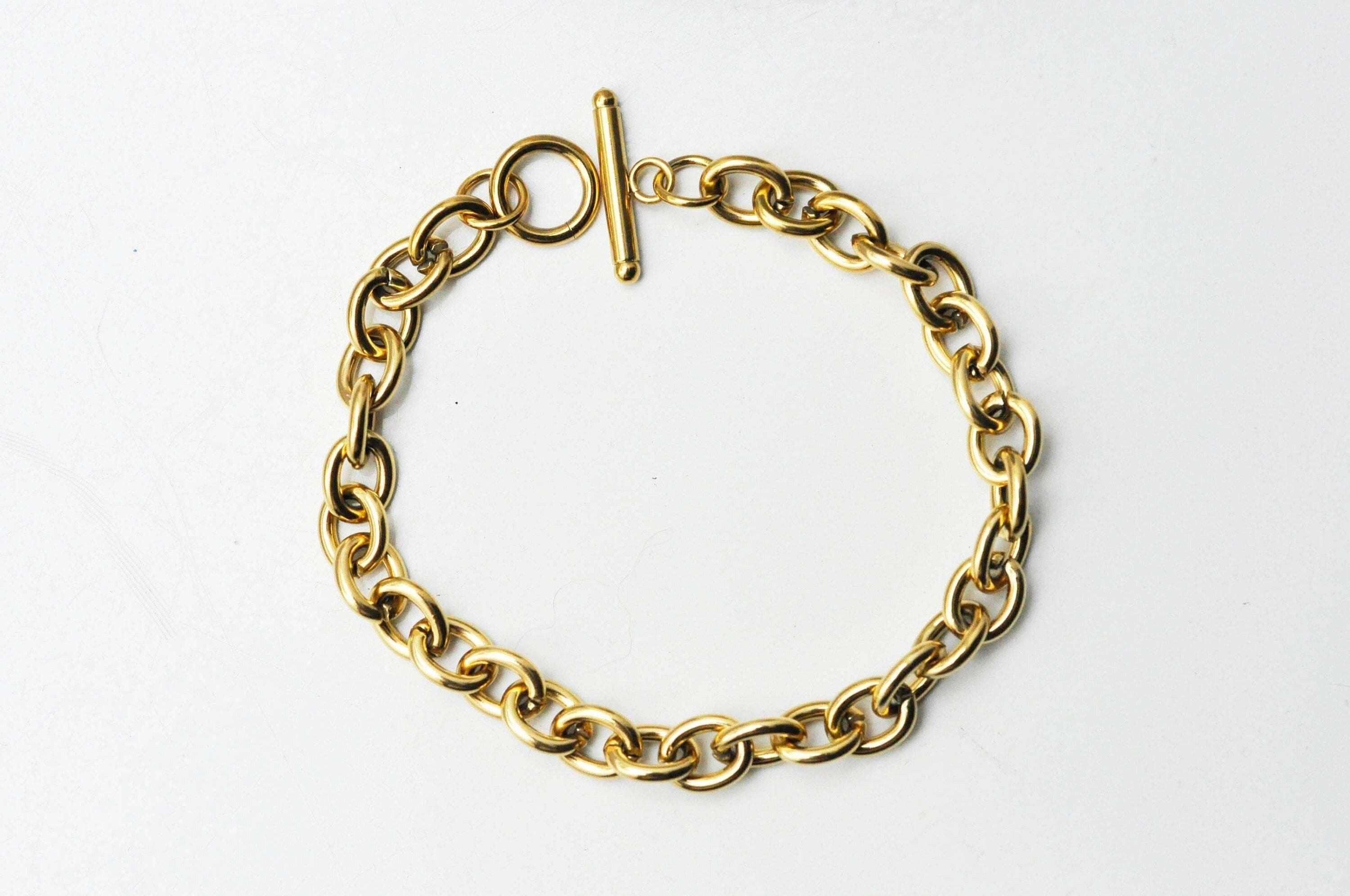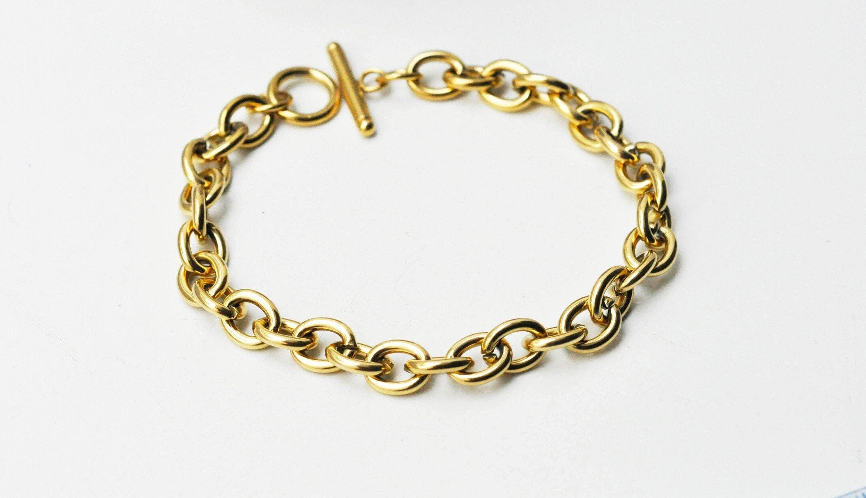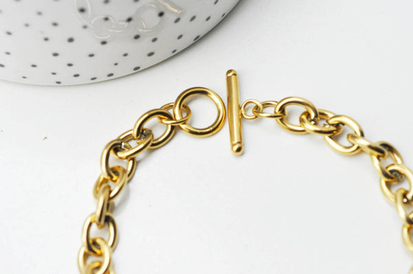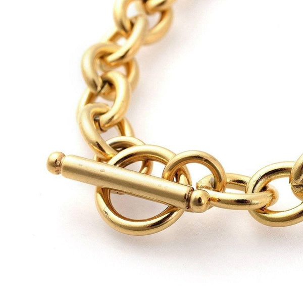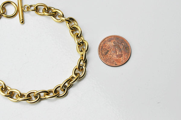 Bracelet grosse maille acier 304 inoxydable doré 14k 22cm, x1 (G4198)