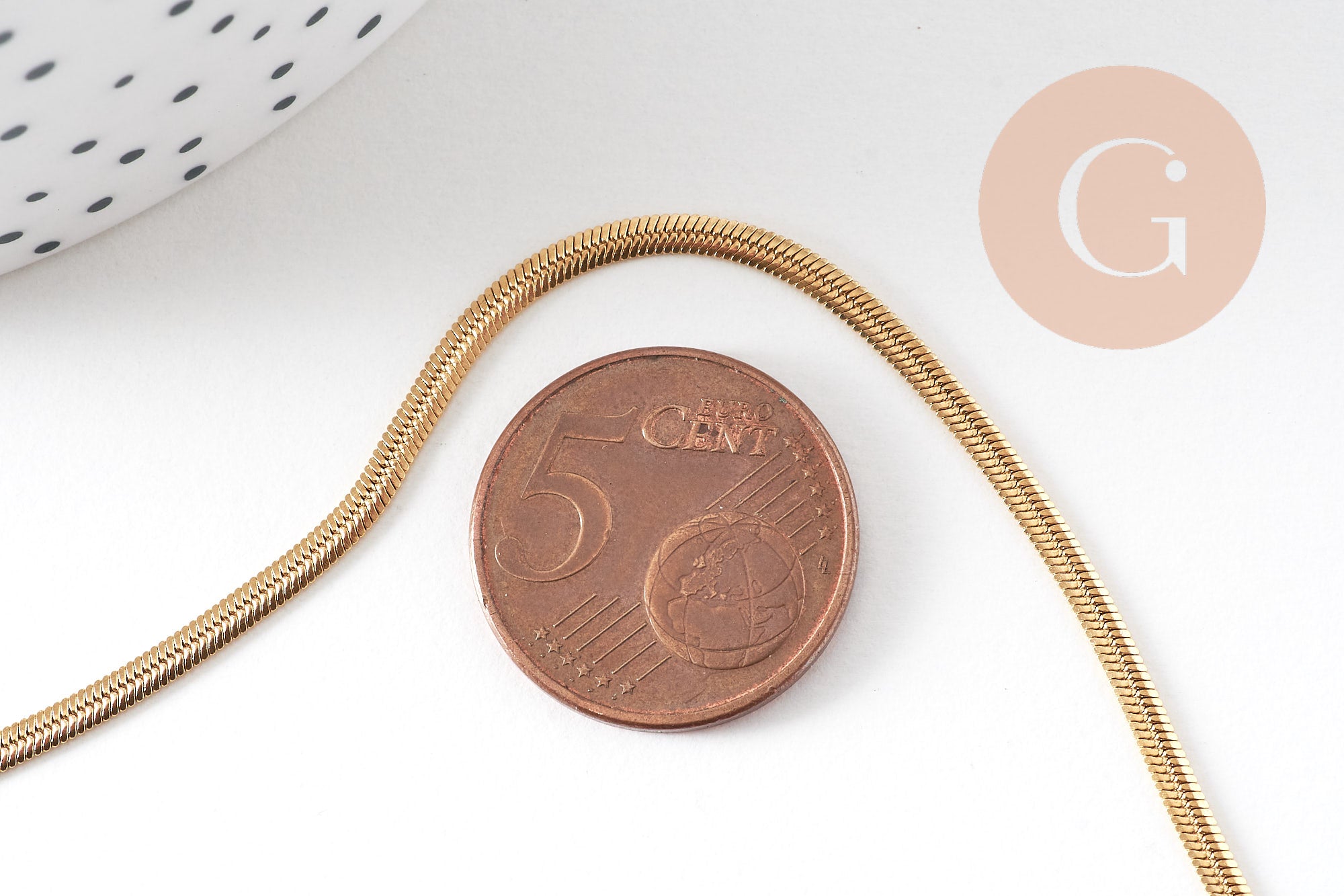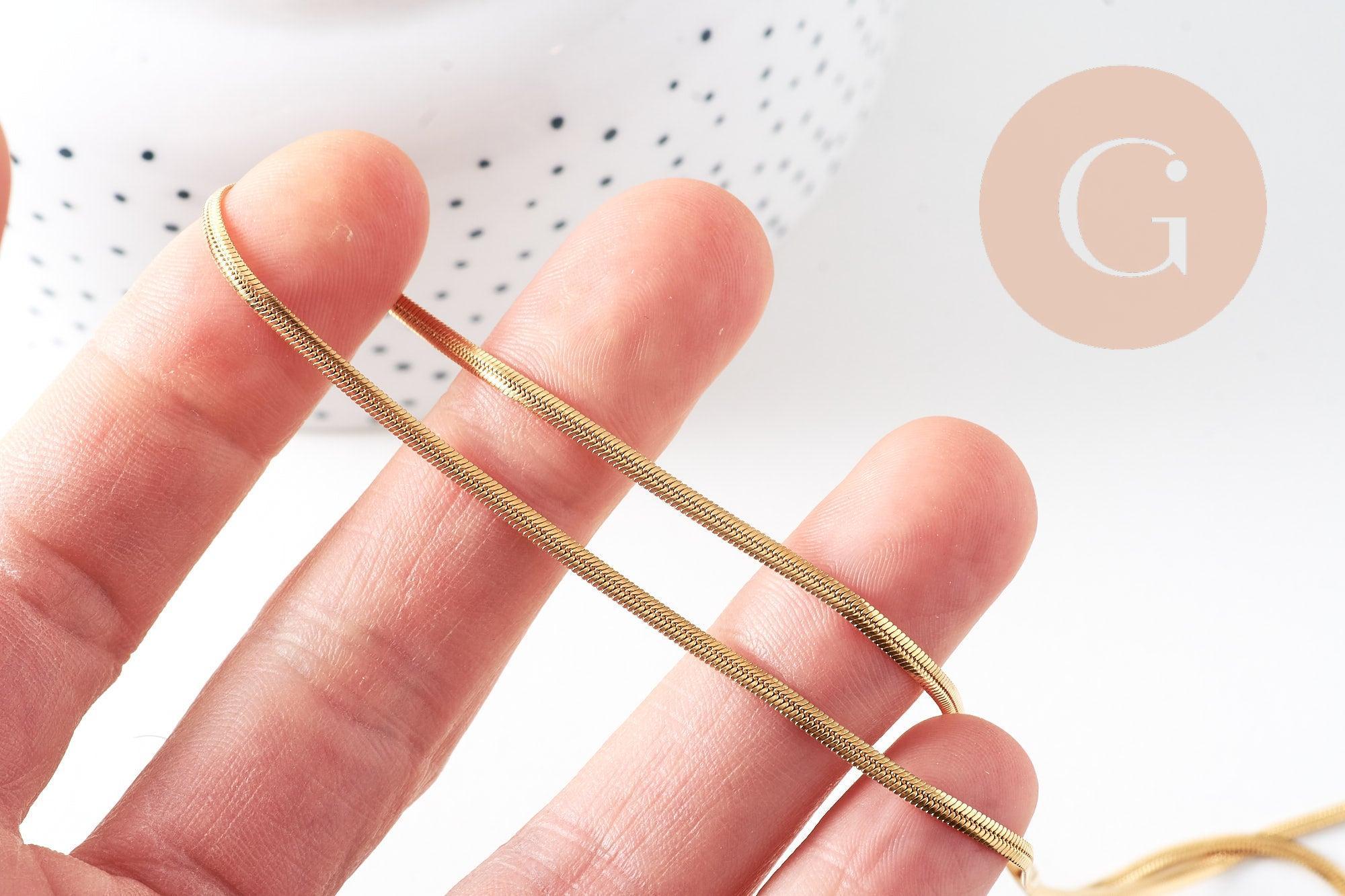 Esta cadena de serpiente completa en acero inoxidable chapado en oro de 14k es ideal para tus creaciones de joyería. Robusto y resistente , será perfecto para todos tus proyectos.