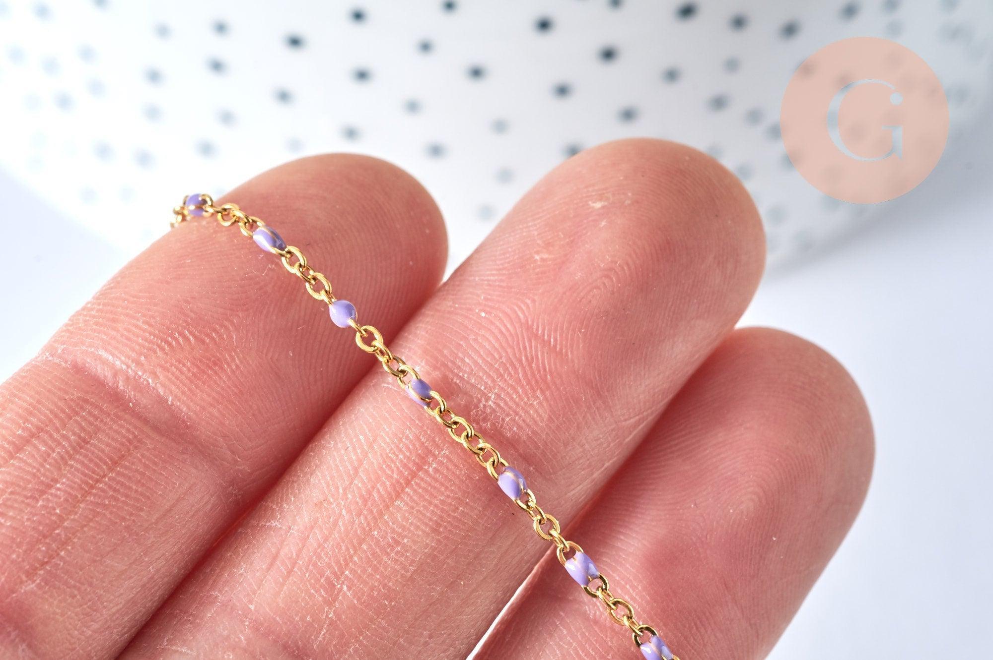 Cadena completa unida con broche y con resina morada aquí y allá, en oro de 14 quilates de 0,25 micras; Esto será ideal para sus diversas creaciones elegantes, como collares elegantes , collares largos de moda, pulseras elegantes y aretes elegantes.