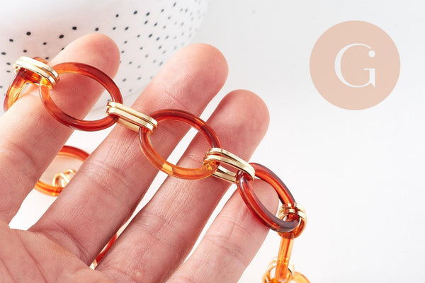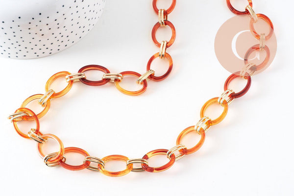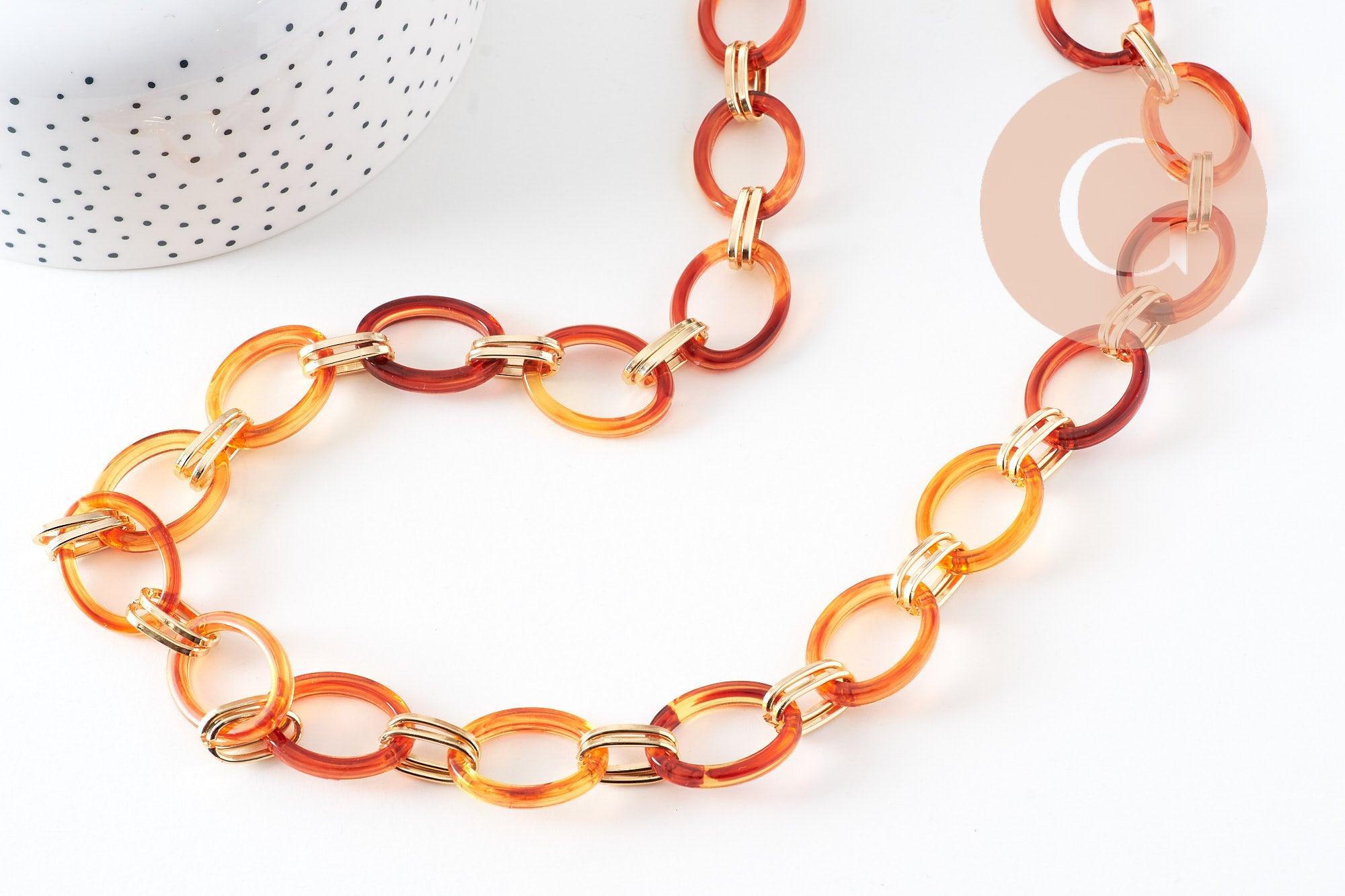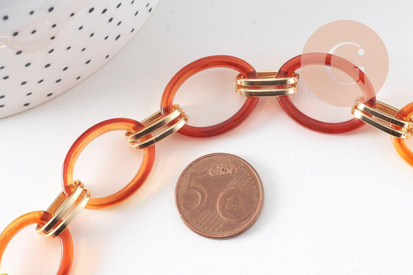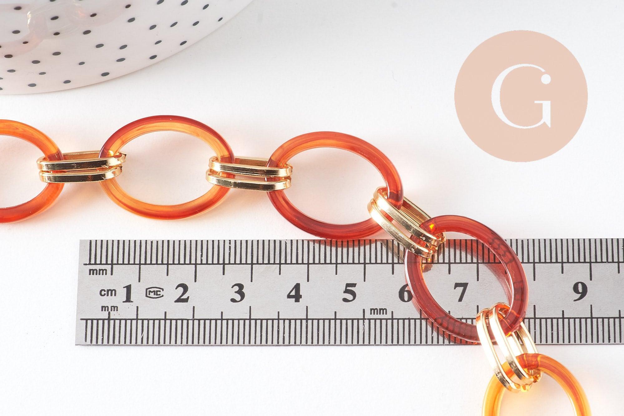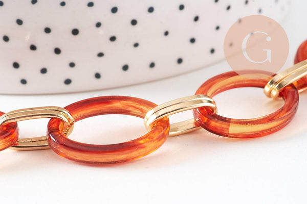 Grosse Chaine ronde écaille acrylique et aluminium doré,perle acétate,chaine plastique,25.5mm, x1 mètre (G4643)