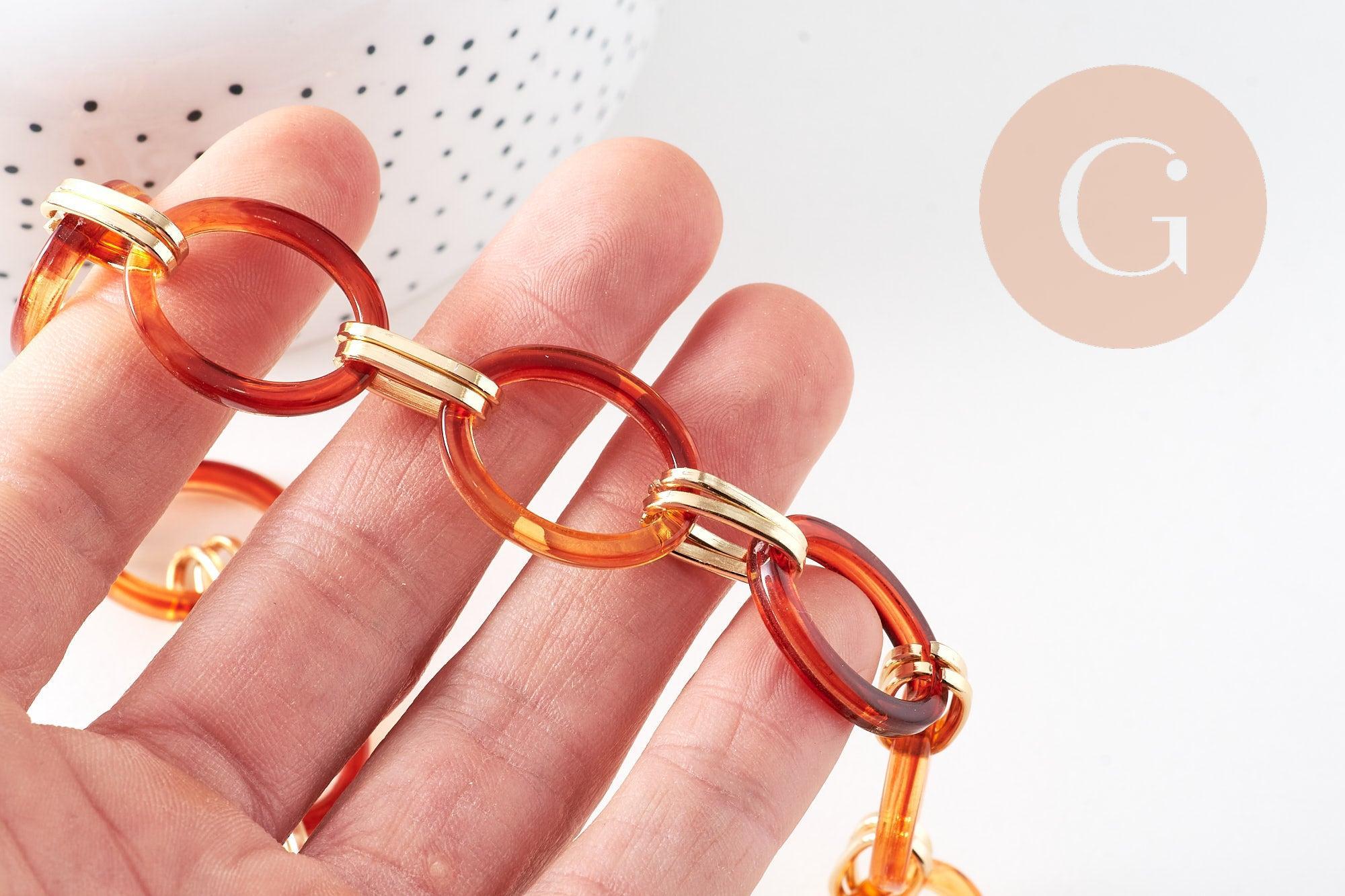 Cadena redonda grande en carey acrílico y aluminio dorado, perla de acetato, creación de joyas, cadena de plástico, 25,5 mm, por metro