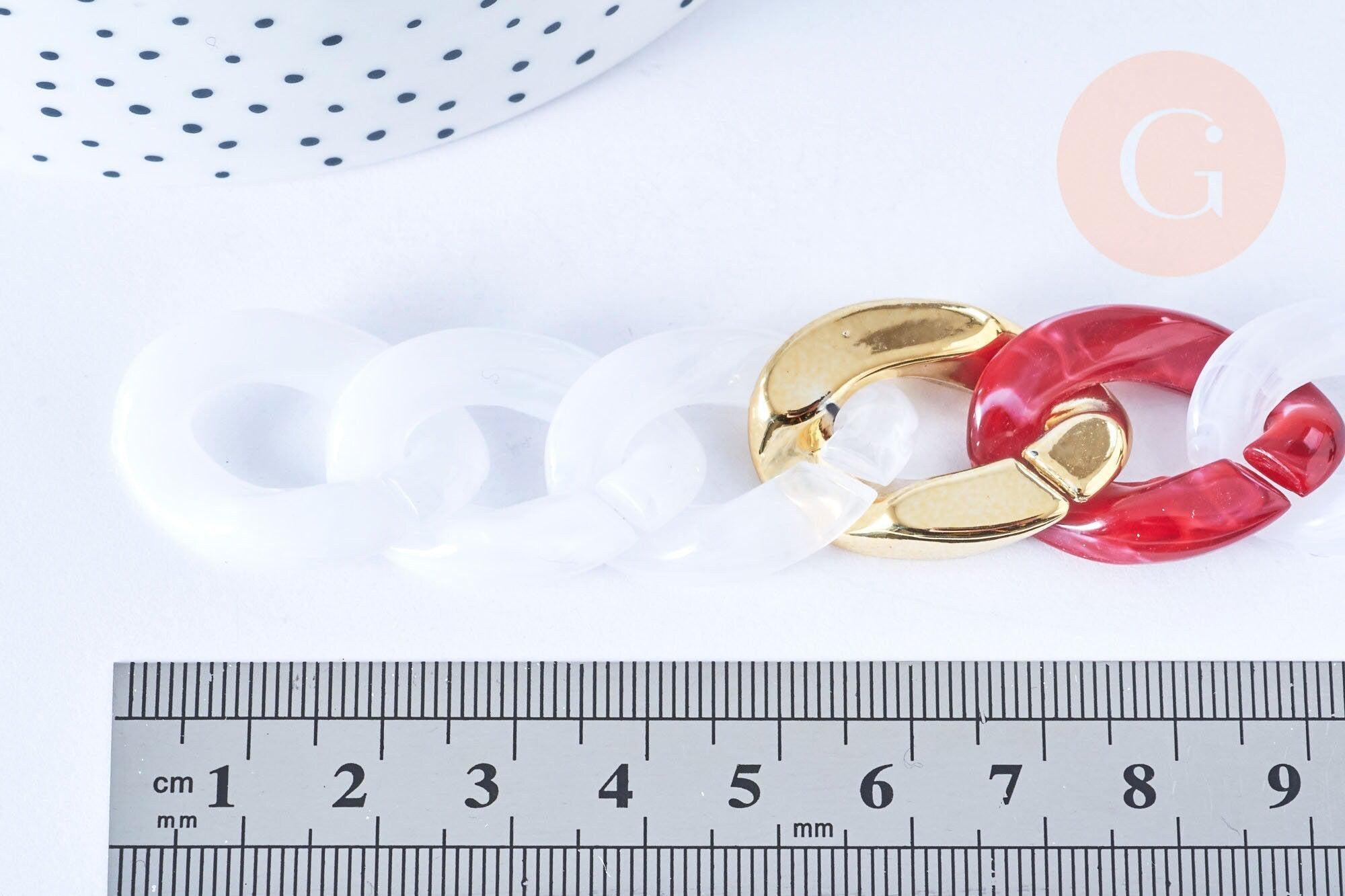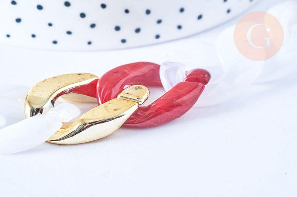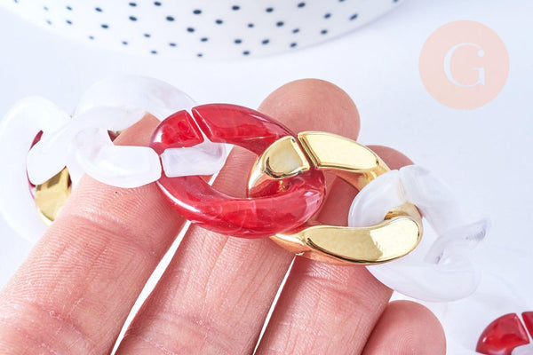 Cadena gruesa de acrílico rojo, dorado y blanco, 29,5 mm, cadena de acetato, cadena de plástico, 1 metro (G5948)