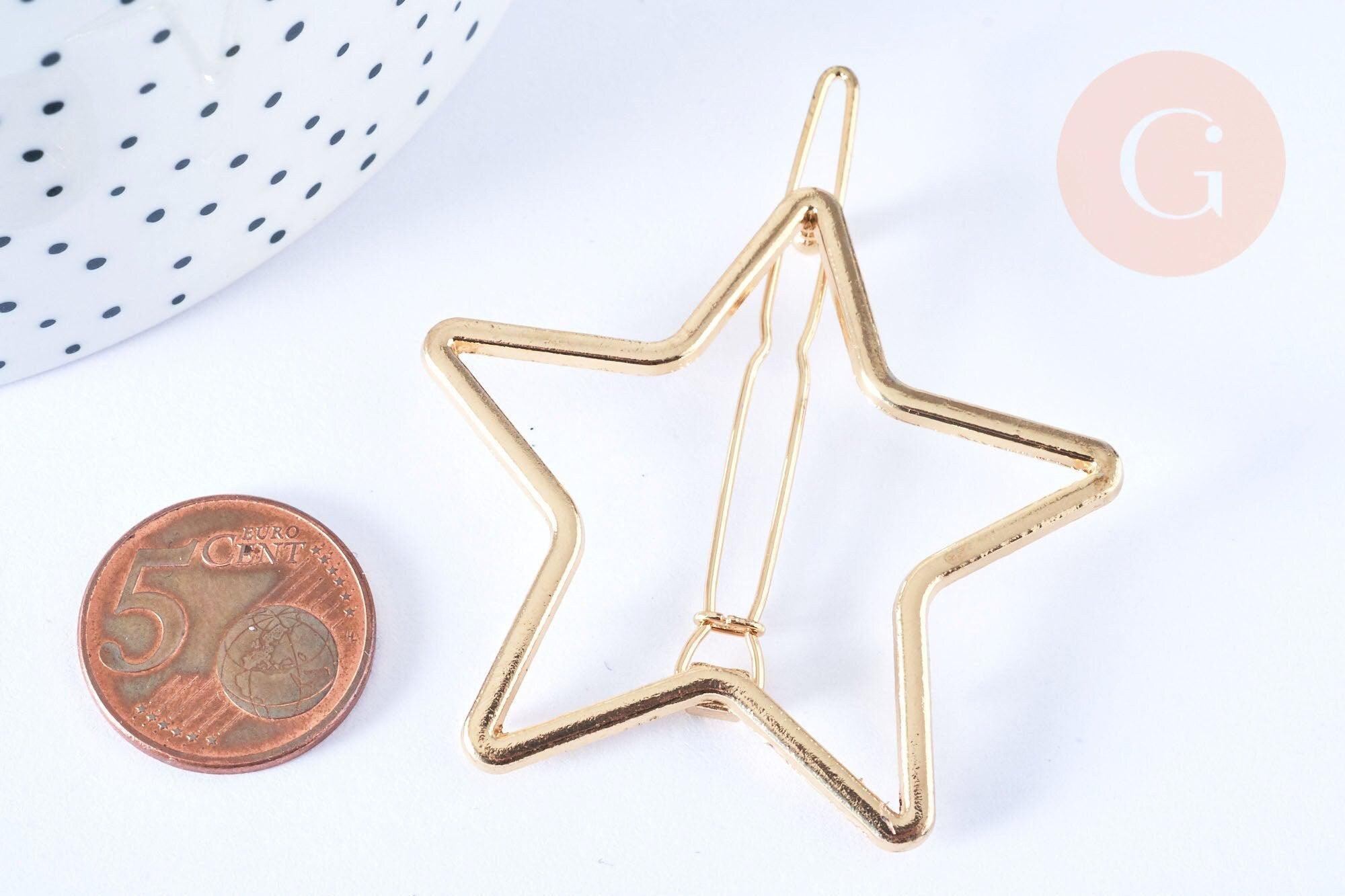 Un pasador con forma de estrella de metal dorado , que se puede adoptar inmediatamente para realizar pasadores para el cabello personalizados;