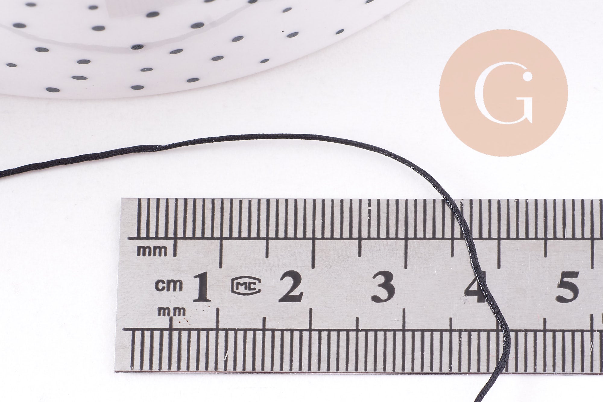 Este cordón trenzado de poliéster negro es imprescindible para todos tus proyectos de joyería y manualidades. Fino, resistente y fácil de manejar, es perfecto para joyería anudada, micromacramé o ensartar cuentas finas.