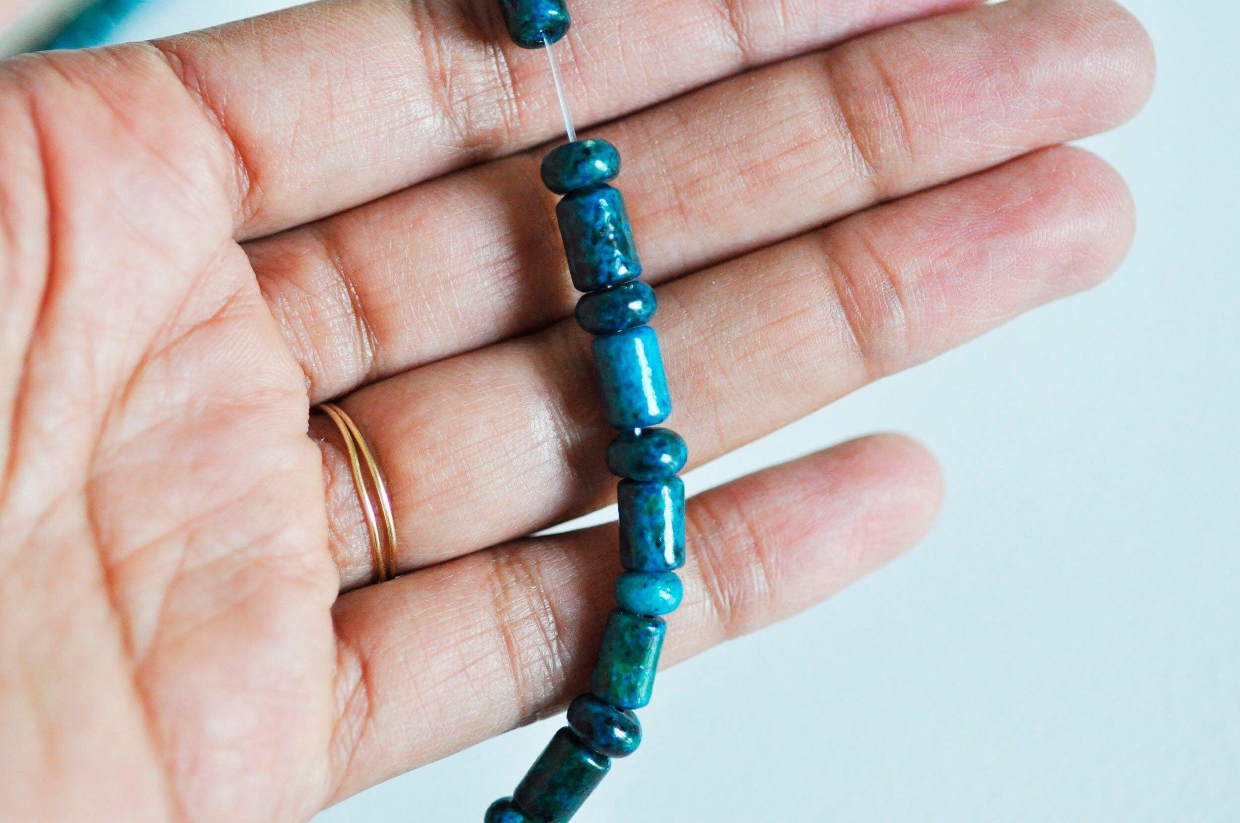 Cuenta de tubo en turquesa verde natural, joyería de piedra, cuentas de piedra, turquesa natural, creación de joyas, 6x3-9 mm, hebra de 50 cuentas Una tira de 50 cuentas de turquesa natural teñidas, imitando crisocola, en forma de tubo y...