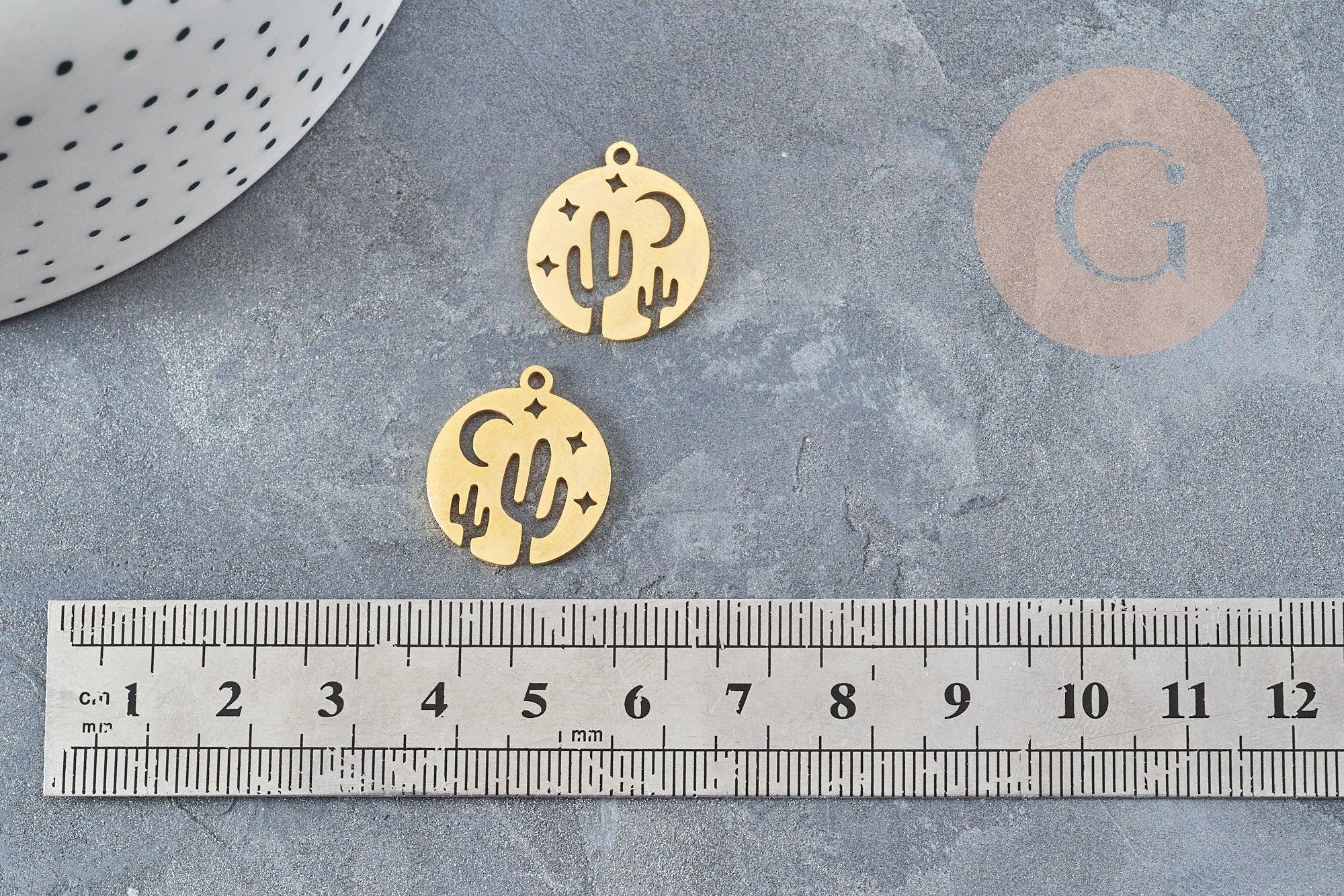Para tus joyas con temática de cactus y desierto, en la tendencia de las constelaciones, aquí tienes un adorable colgante redondo con estrellas y un cactus en acero inoxidable dorado, que puedes adornar con una piedra o perlas.