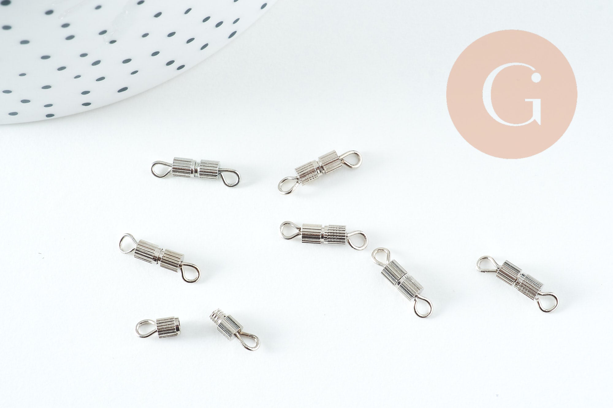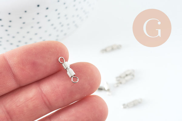 Dale un toque elegante y confiable a tus joyas con este juego de 10 cierres de rosca de latón con acabado platino . Prácticos y discretos, estos cierres son perfectos para asegurar tus collares y pulseras sin sacrificar el estilo. Su pequeño tamaño los hace ideales para creaciones refinadas y minimalistas.