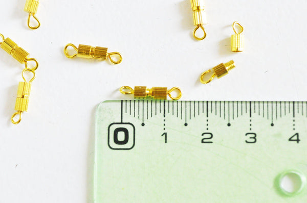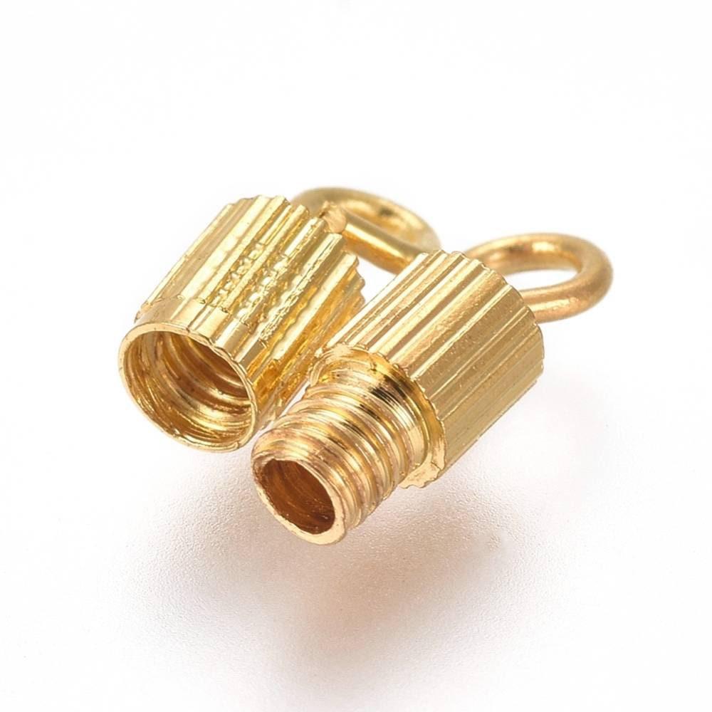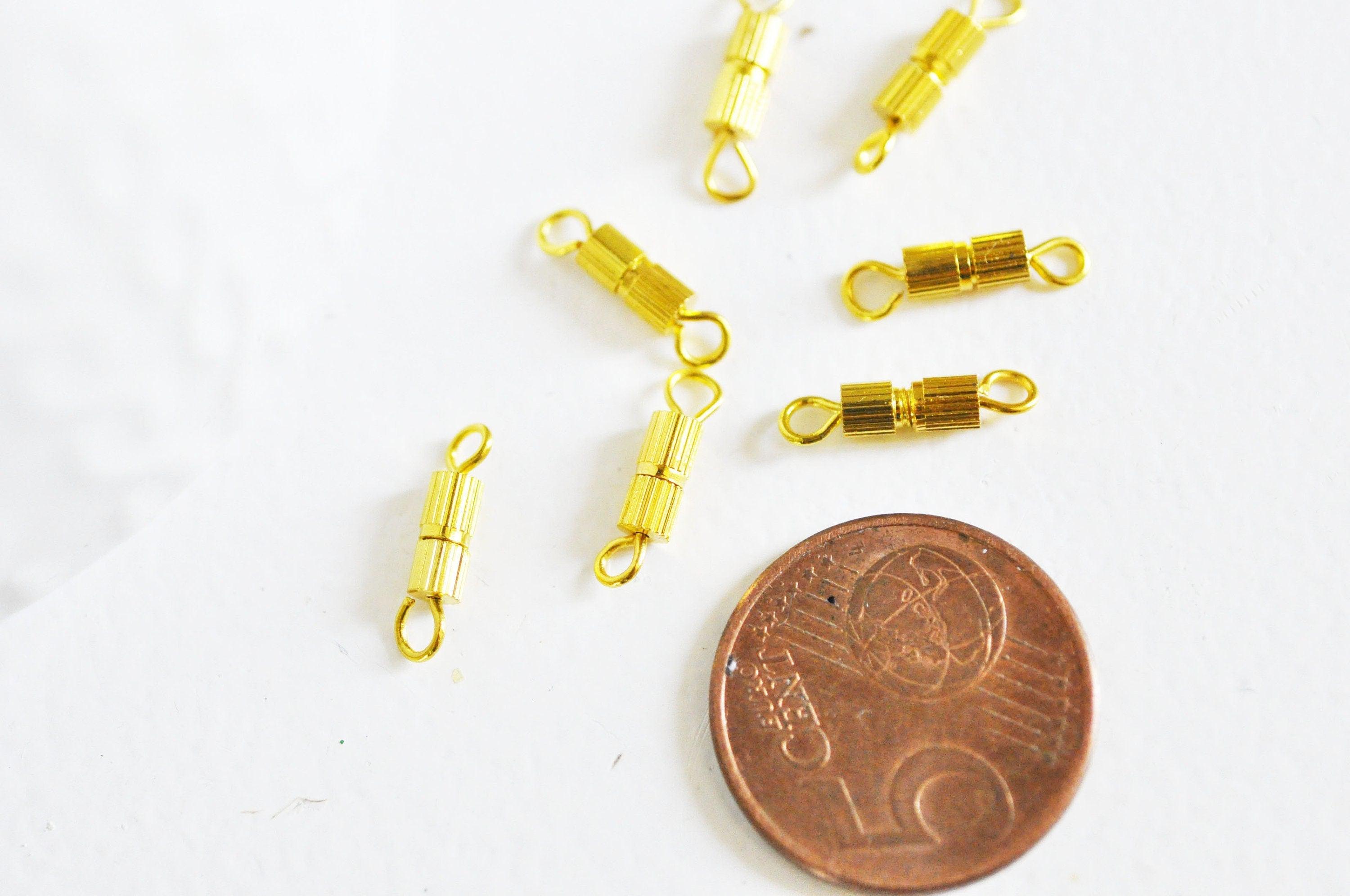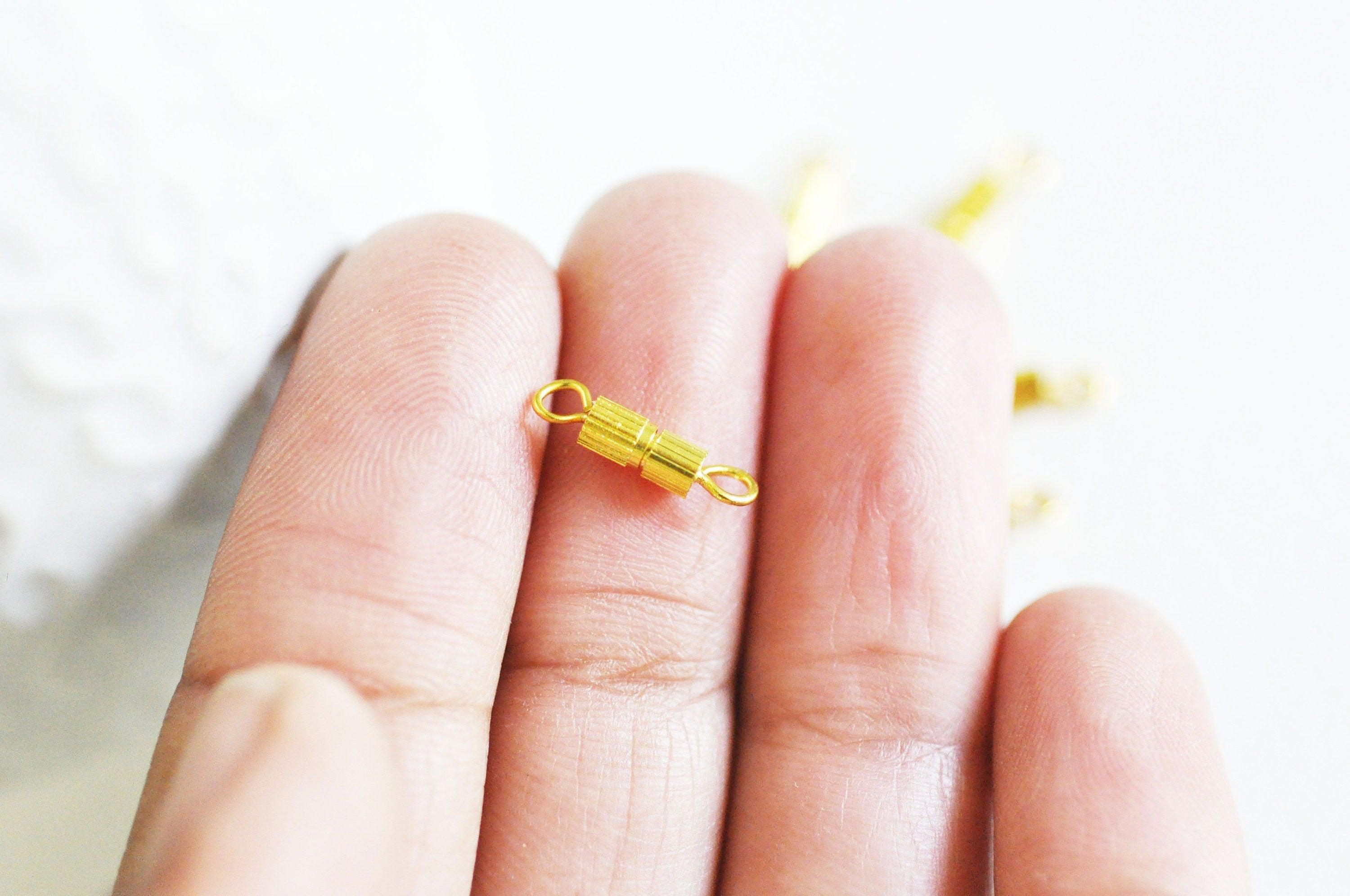 Dale un toque elegante y seguro a tus collares y pulseras con estos cierres de rosca de latón chapado en oro . Su diseño discreto y práctico es perfecto para todo tipo de creaciones, desde las más clásicas hasta las más modernas.