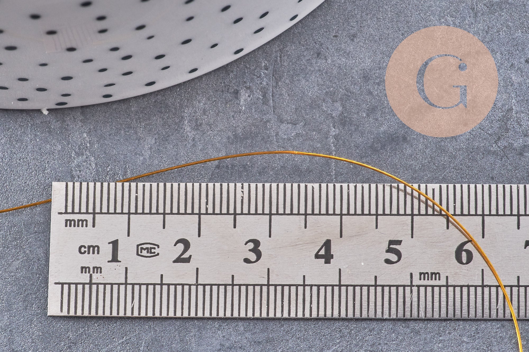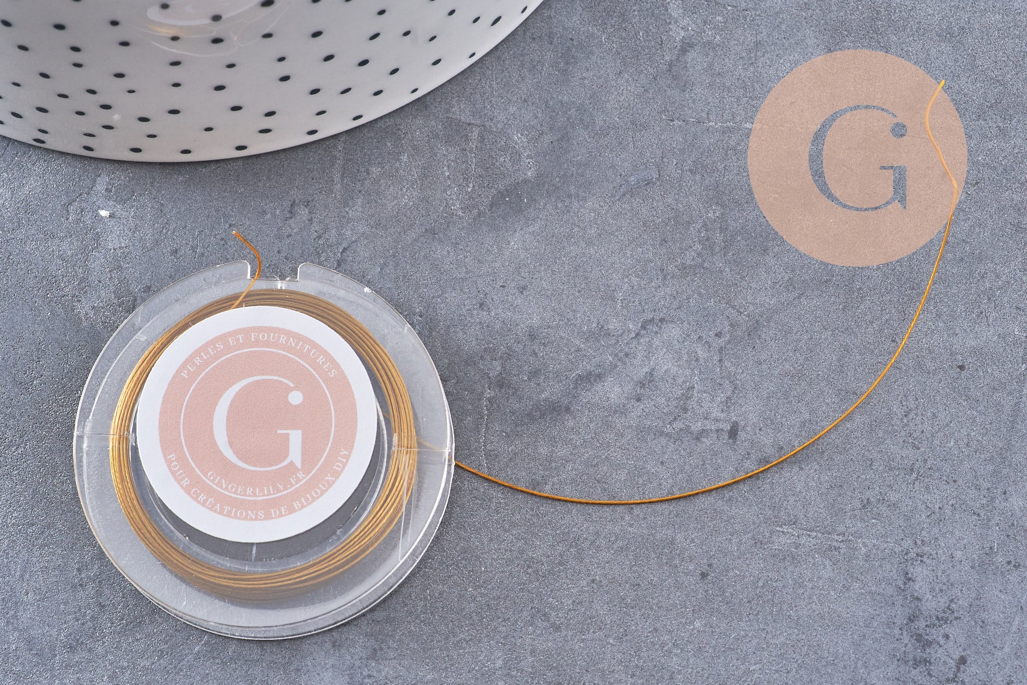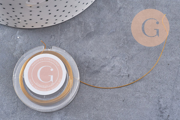 Un mini carrete de 9 metros de alambre de acero dorado, recubierto de nailon.
