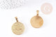 Colgante medalla corazón acero dorado, colgante acero dorado, sin níquel, acero dorado, creación de joyas, medalla de acero, 19mm