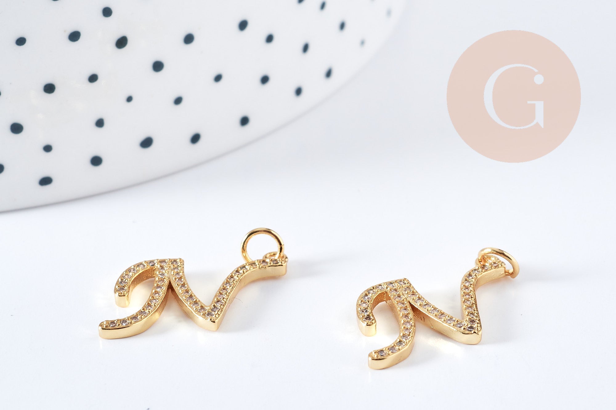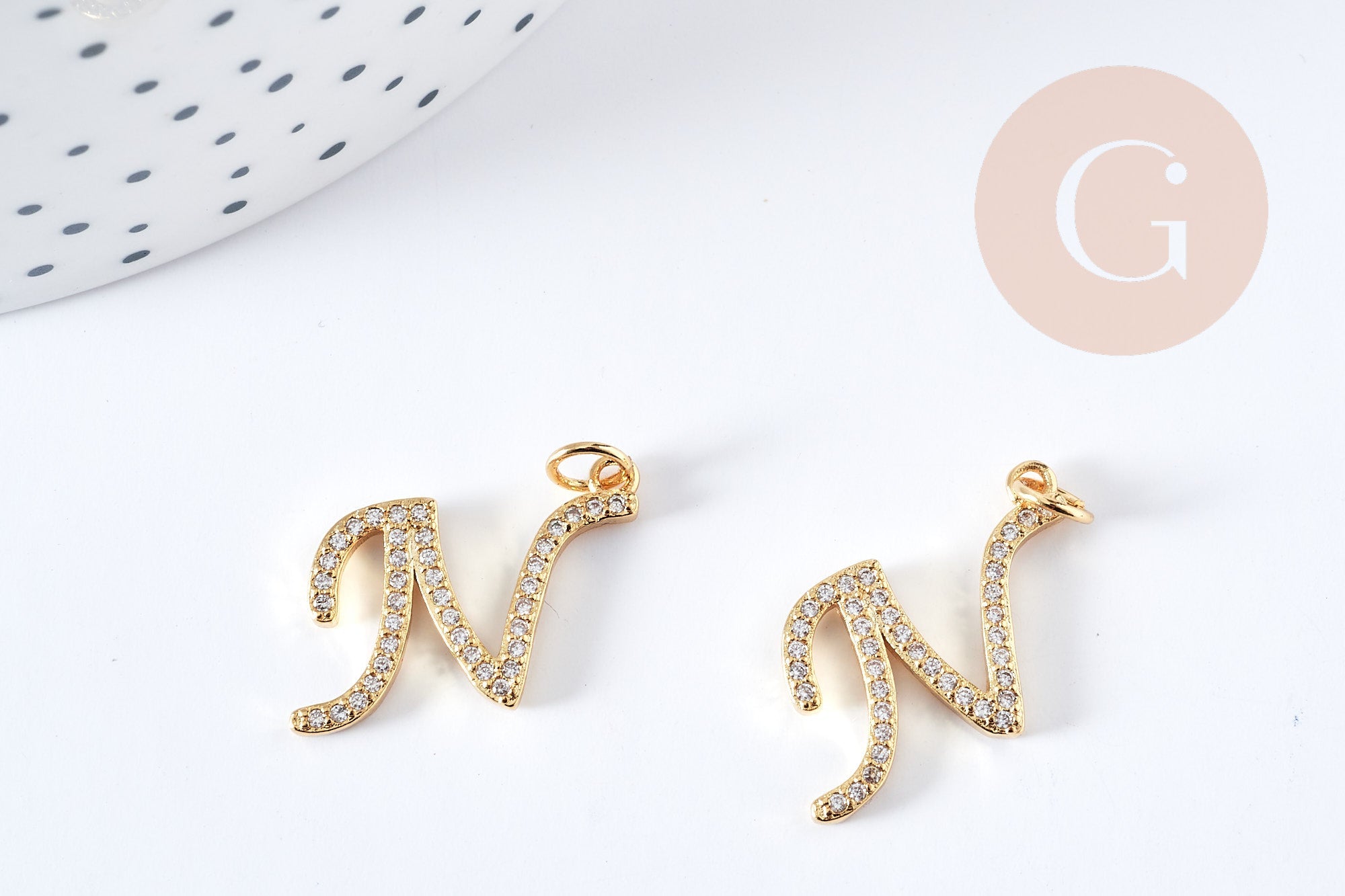Pendentif lettre N initiale laiton doré zircon blanc 16mm, pendentif initiale prénom x1 G8758