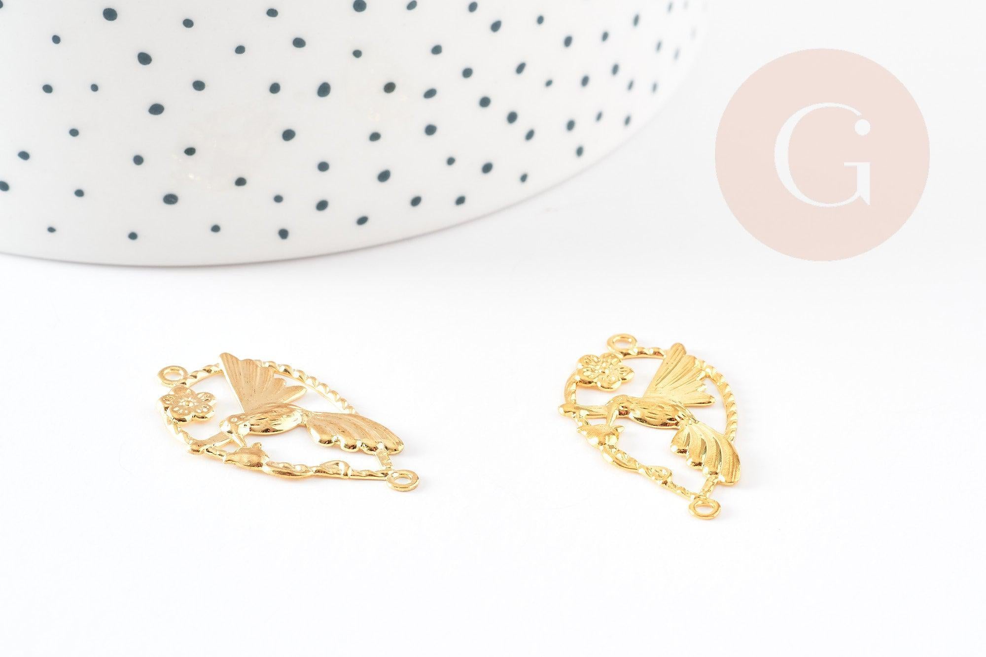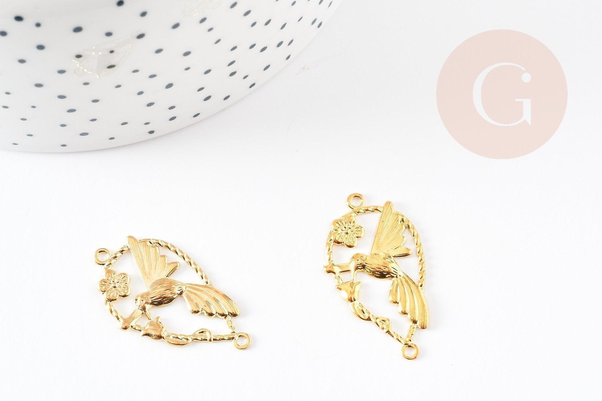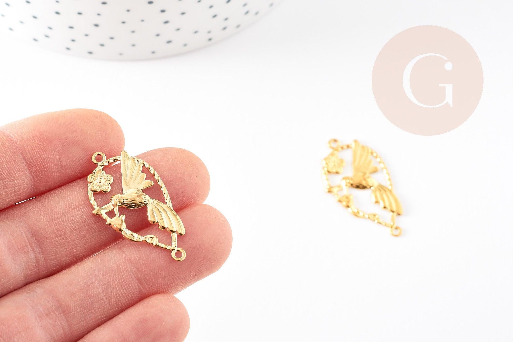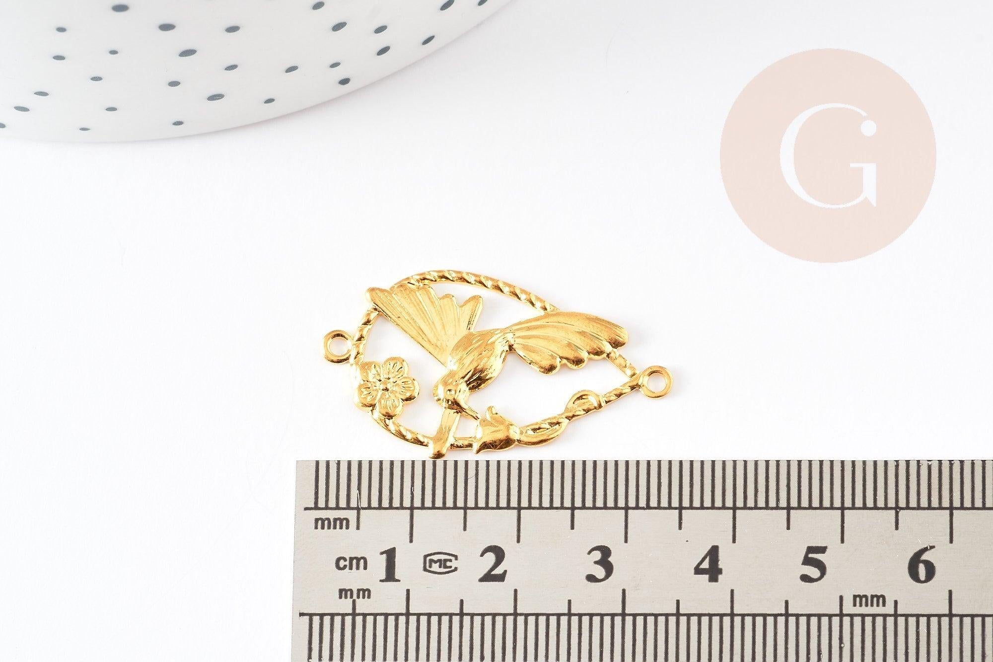 Pendentif connecteur ovale colibri laiton doré 33.5mm, x1 G4036