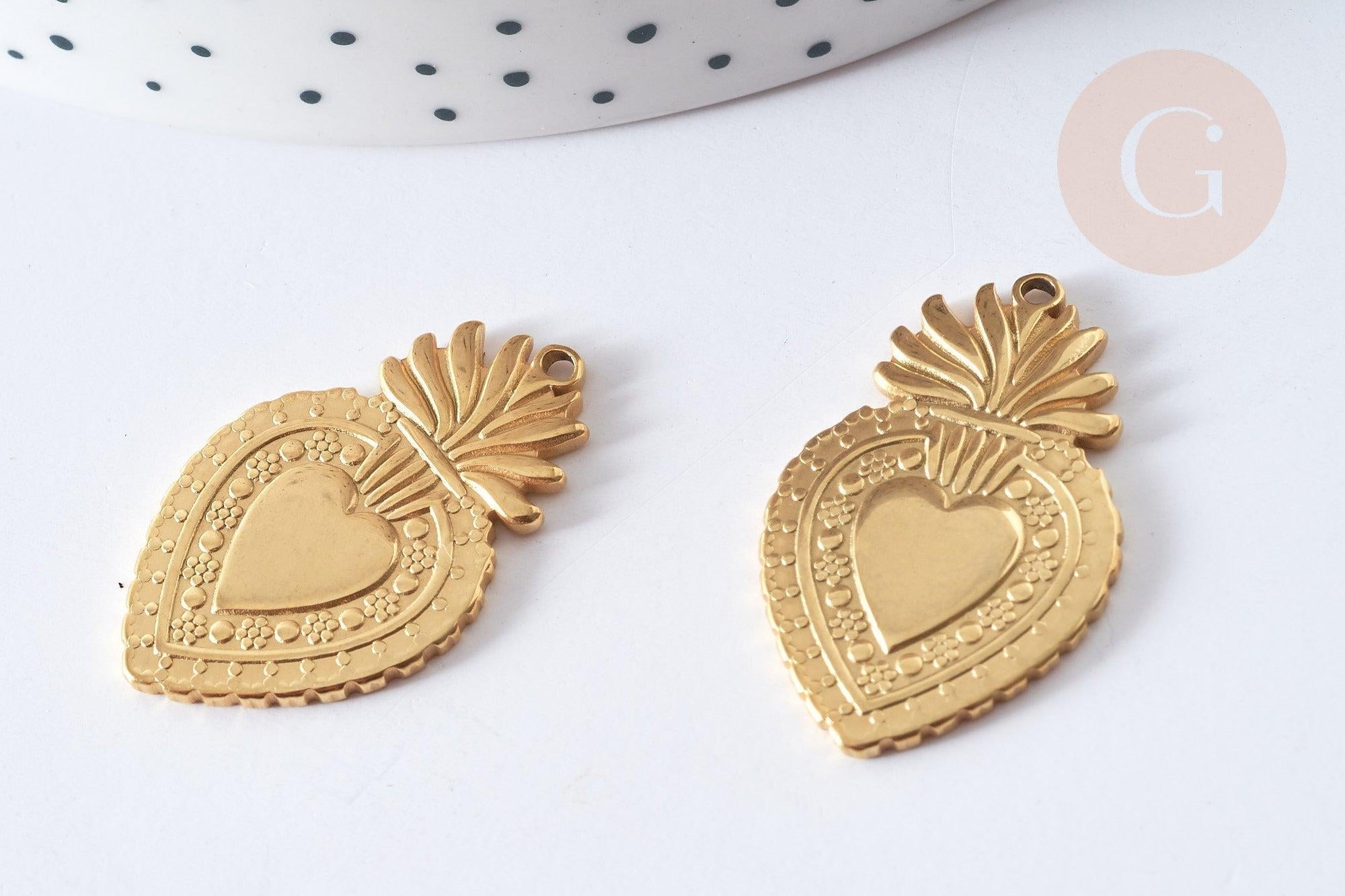 Adopte este colgante de corazón de tendencia amorosa en acero inoxidable chapado en oro 304.