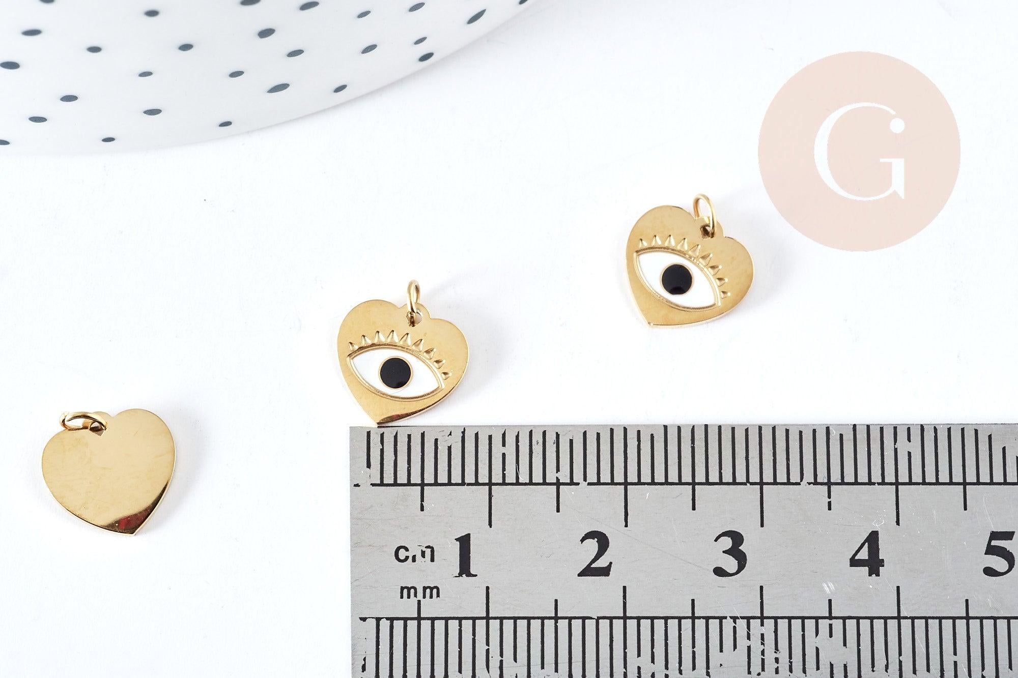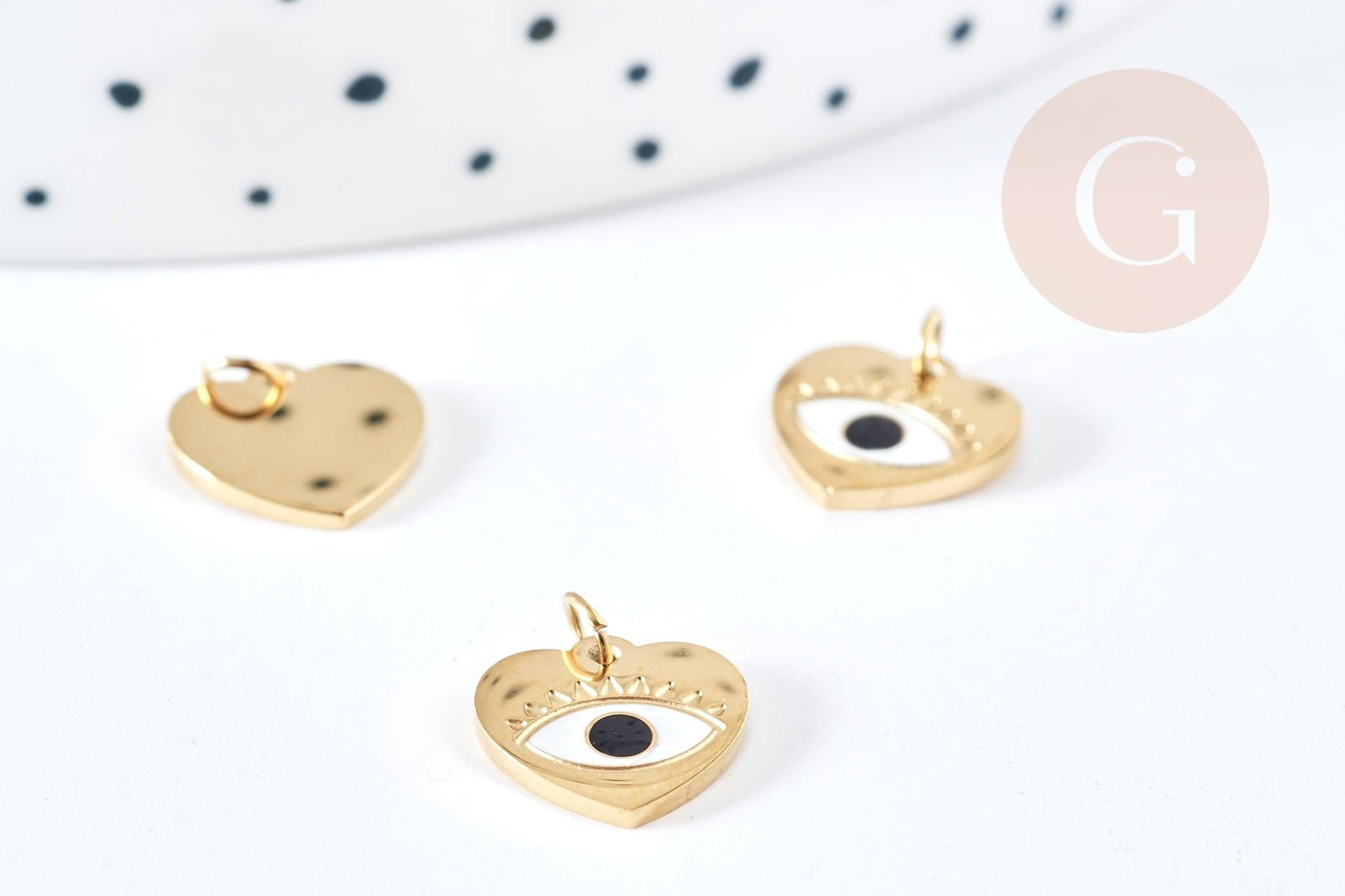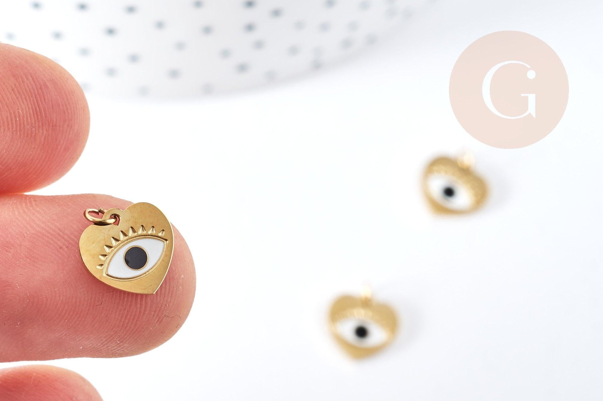 Pendentif coeur oeil acier doré 316 inoxydable émaillé 10mm, x1 (G8816)