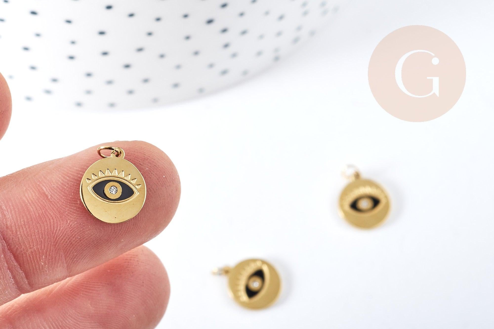 Colgante de ojo redondo, acero inoxidable 316 chapado en oro, esmaltado, 11,5 mm, x1 (G8856)