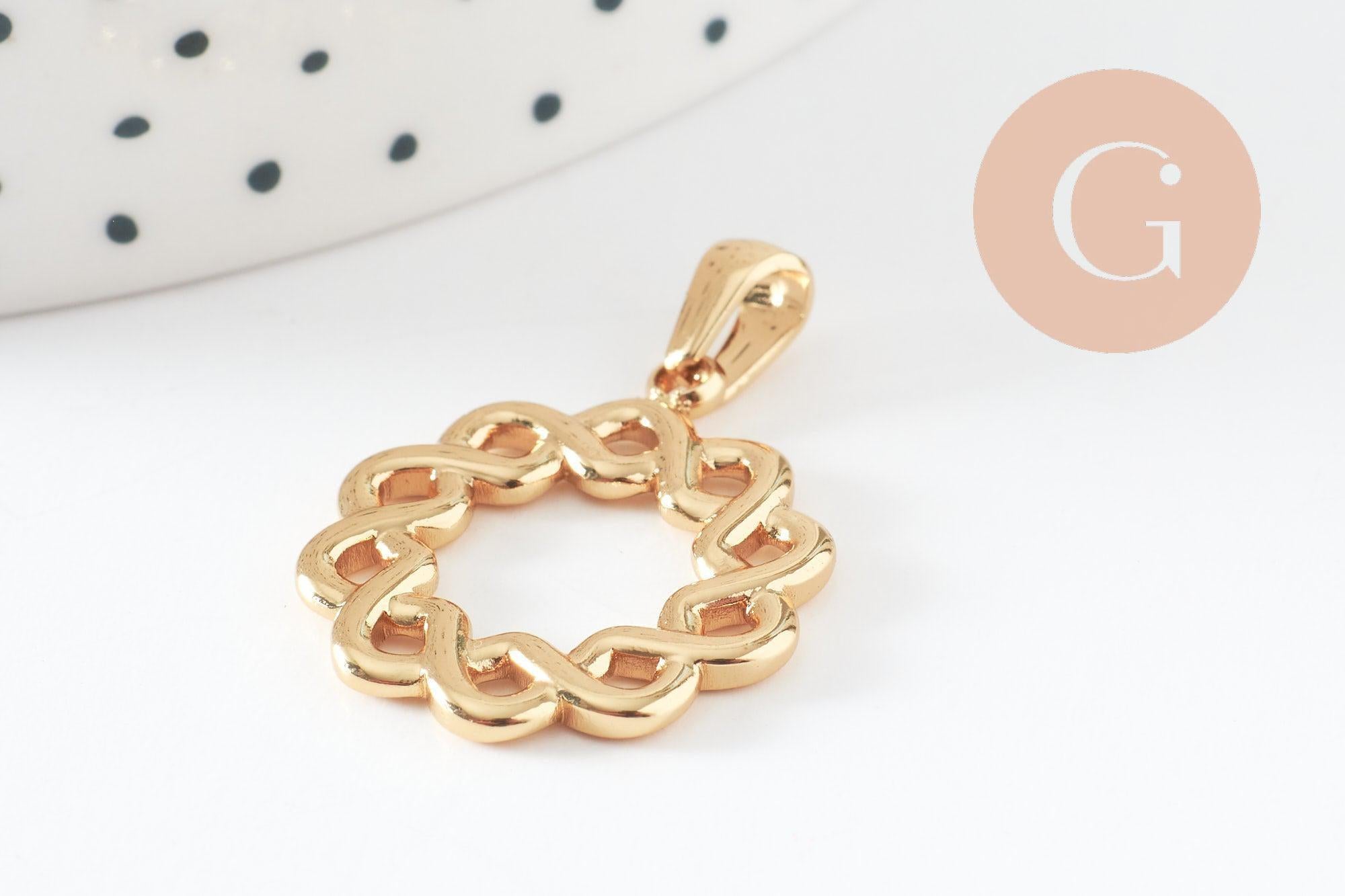 Este colgante redondo trenzado en acero inoxidable dorado 304 , de 25 mm de diámetro , es una base ideal para tus creaciones personalizadas.
