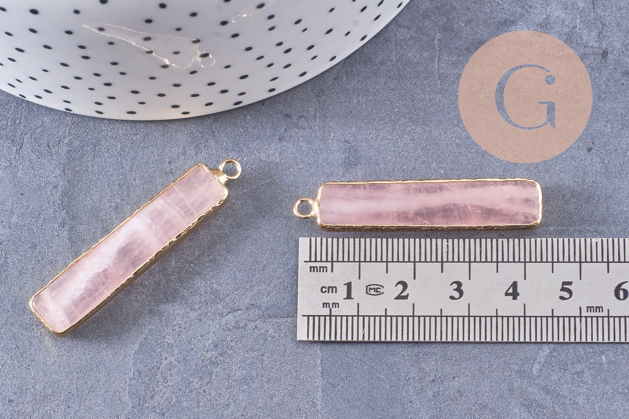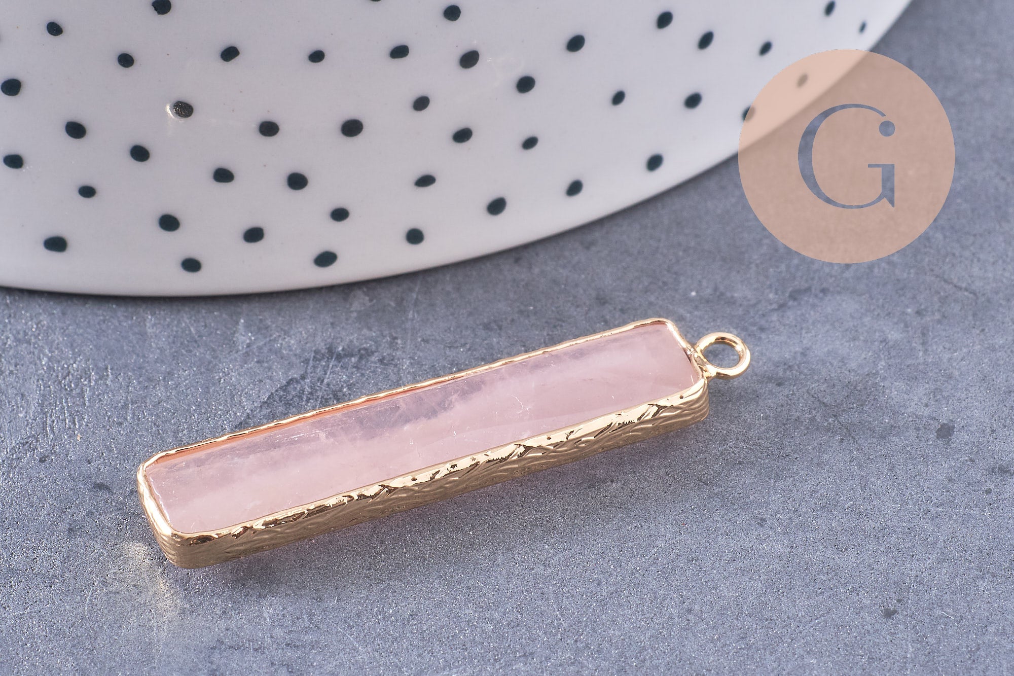Pendentif rectangle quartz rose facettes laiton doré 46.5mm, x1 (G0498)