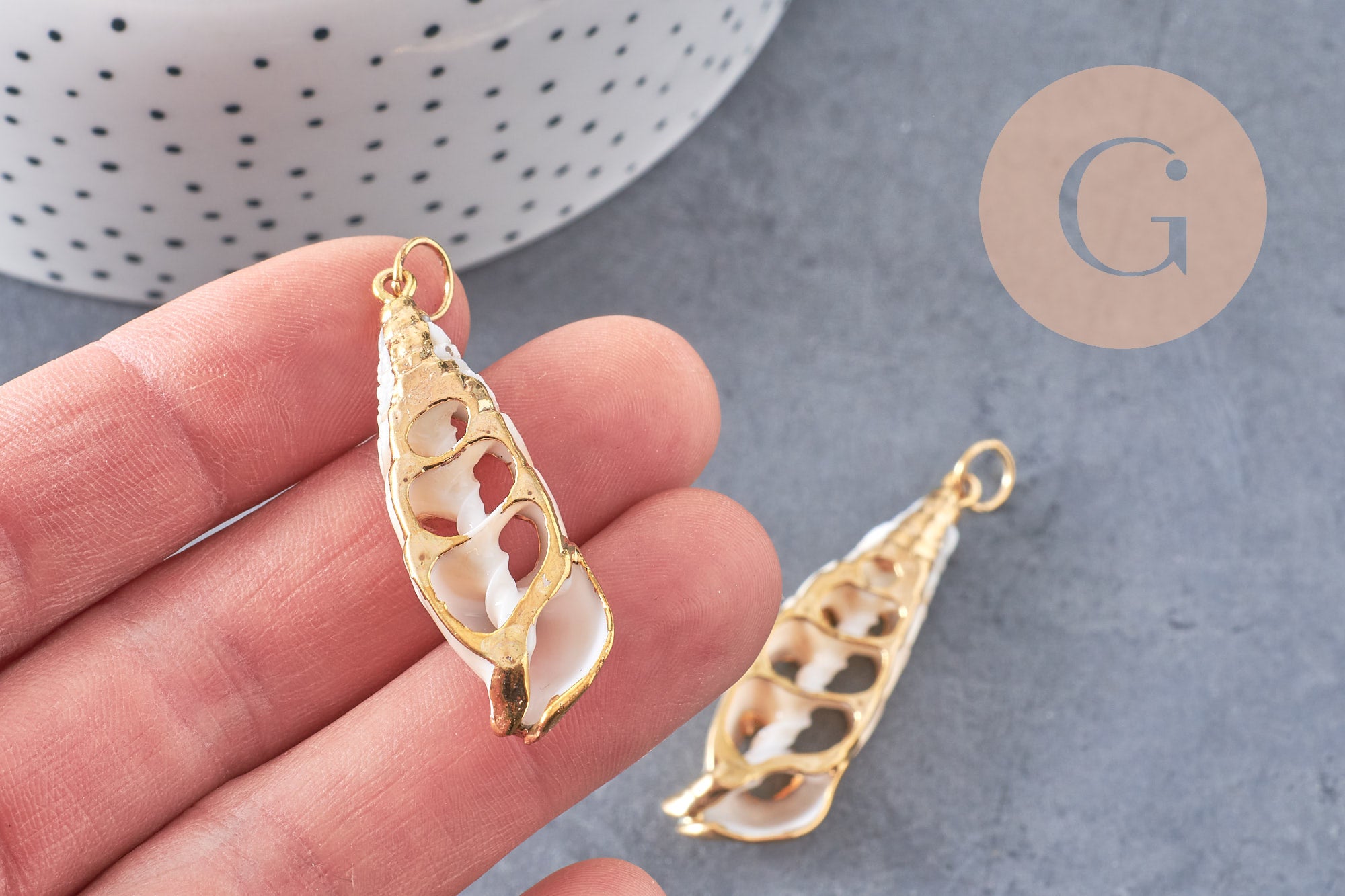 Concha blanca natural dorada, suministro creativo, creación de joyas colgantes de plata, concha nacarada, joyería de concha natural, 43-47 mm
