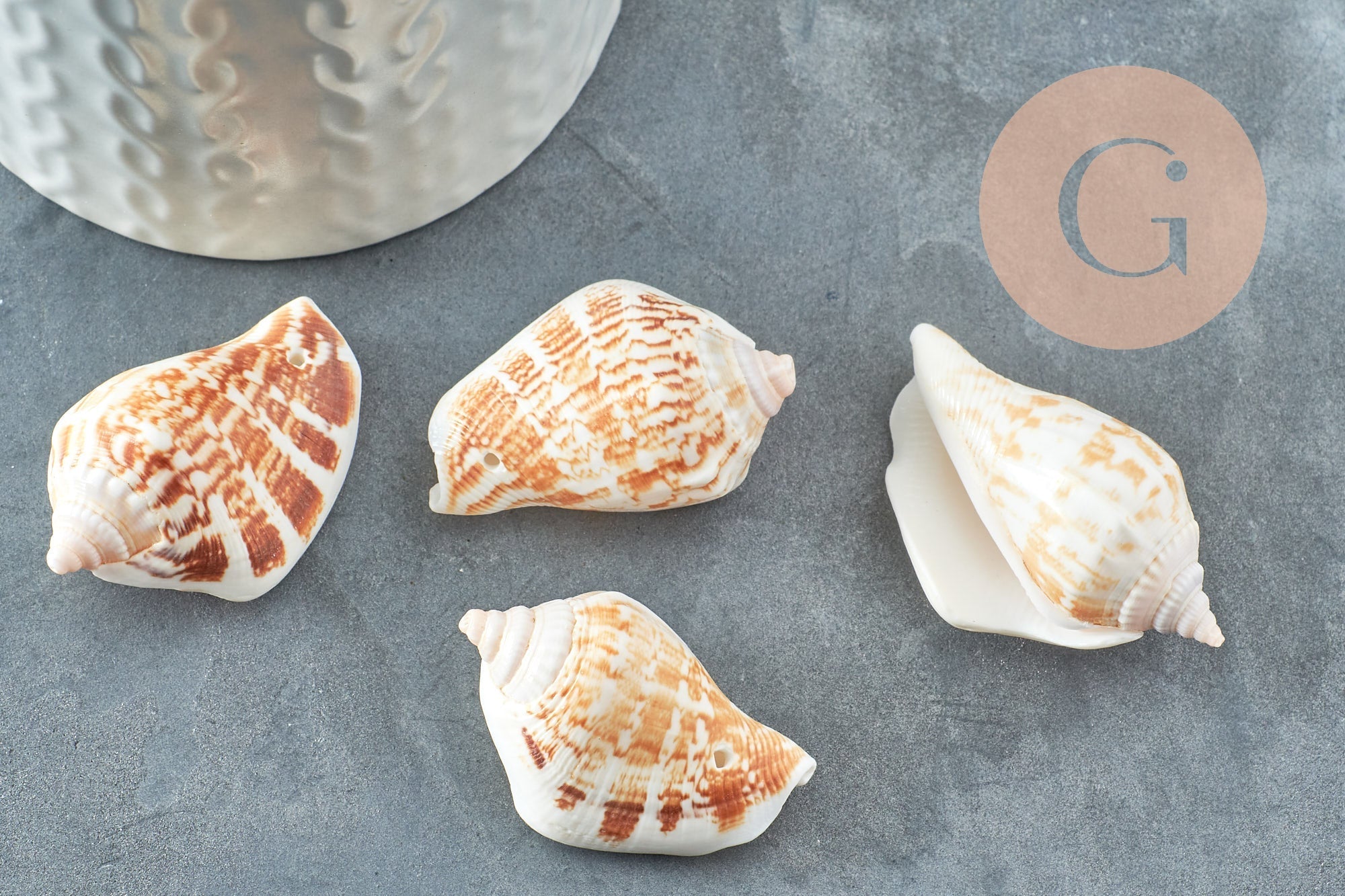 Coquillage naturel Conch percé 30-55mm, x5 (G0467)